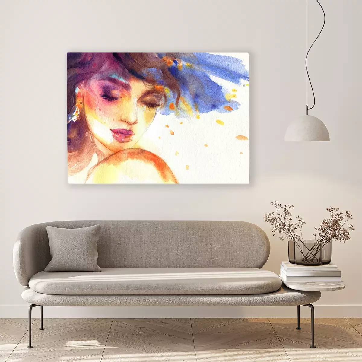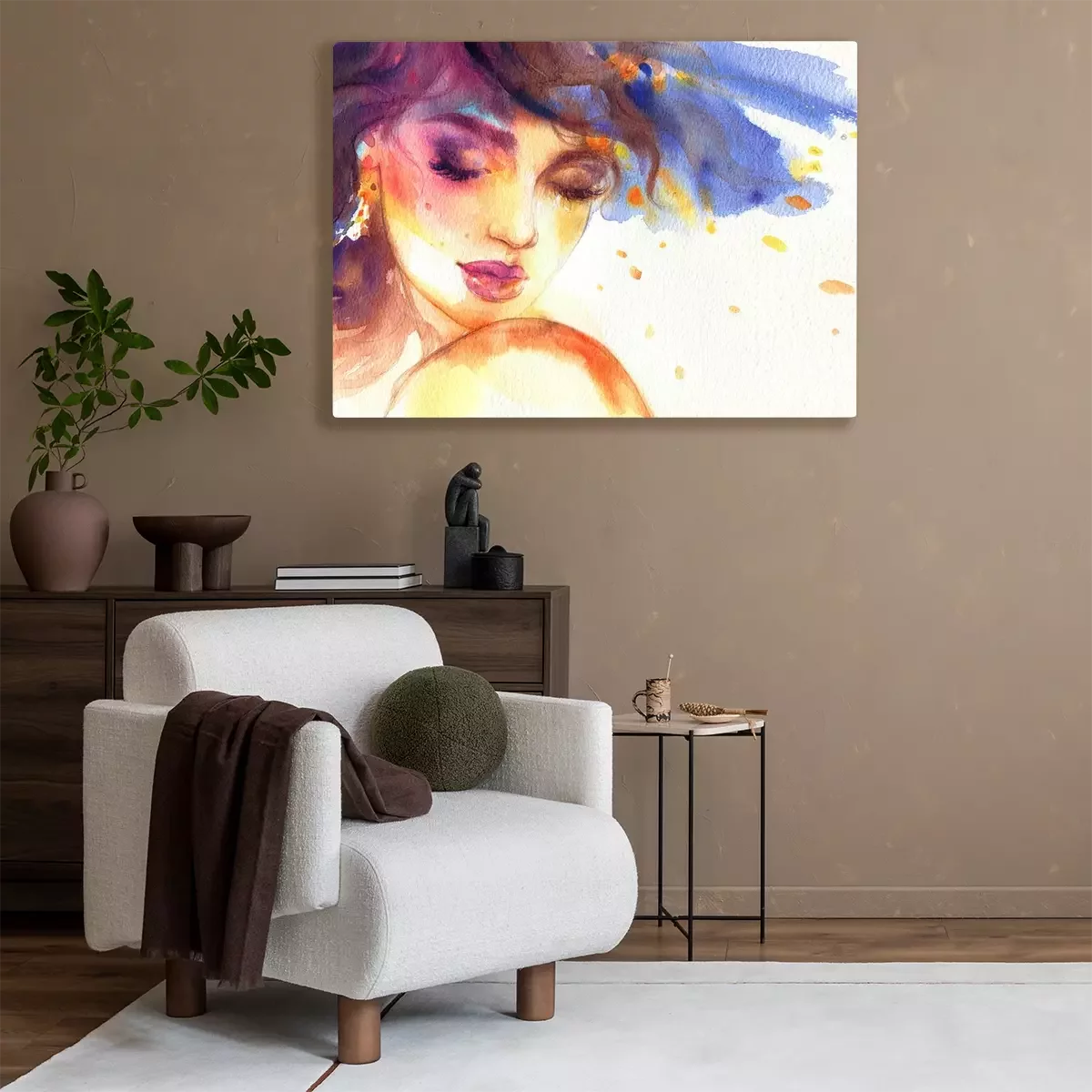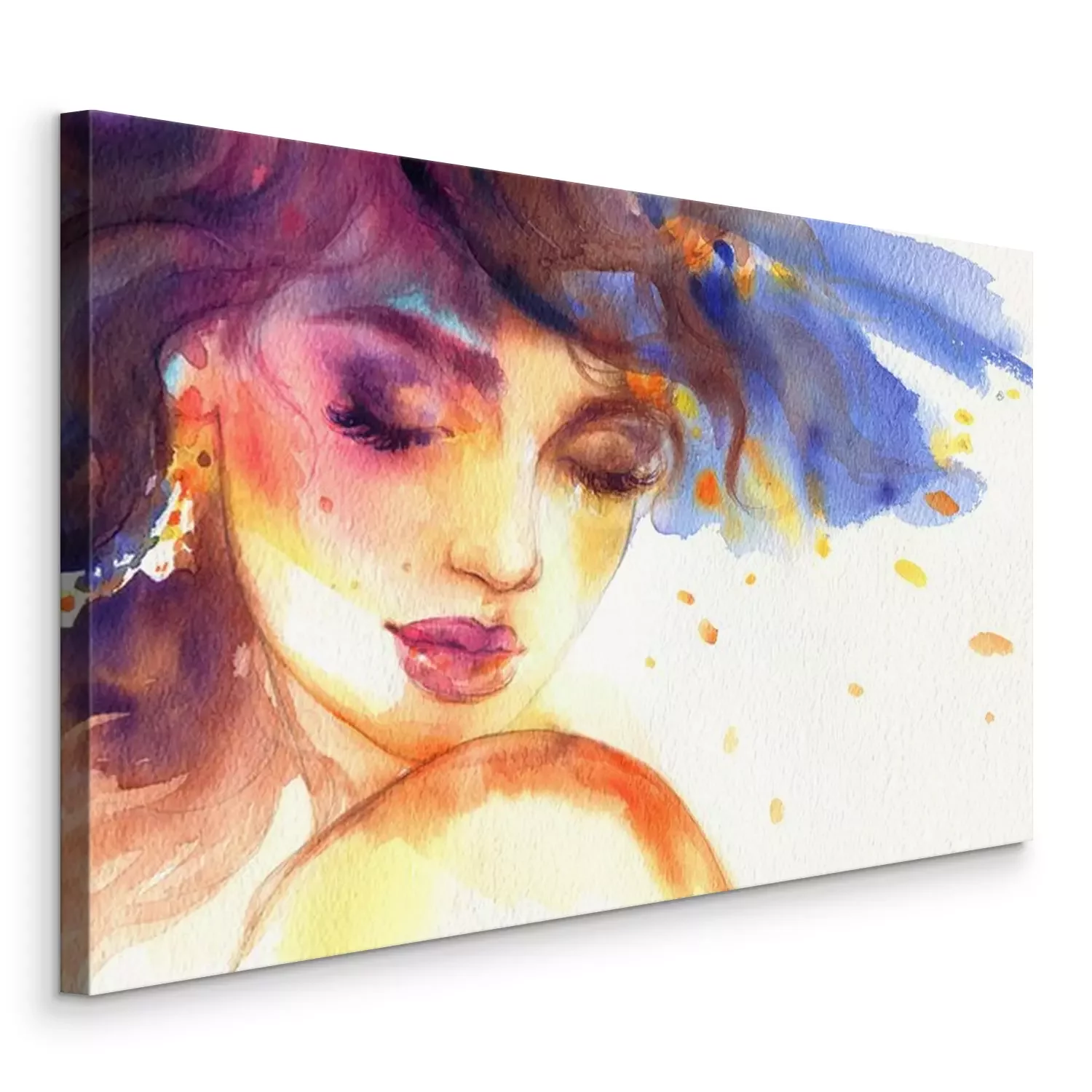 Abstraktes Gesicht einer Frau mit Aquarellfarben gemalt