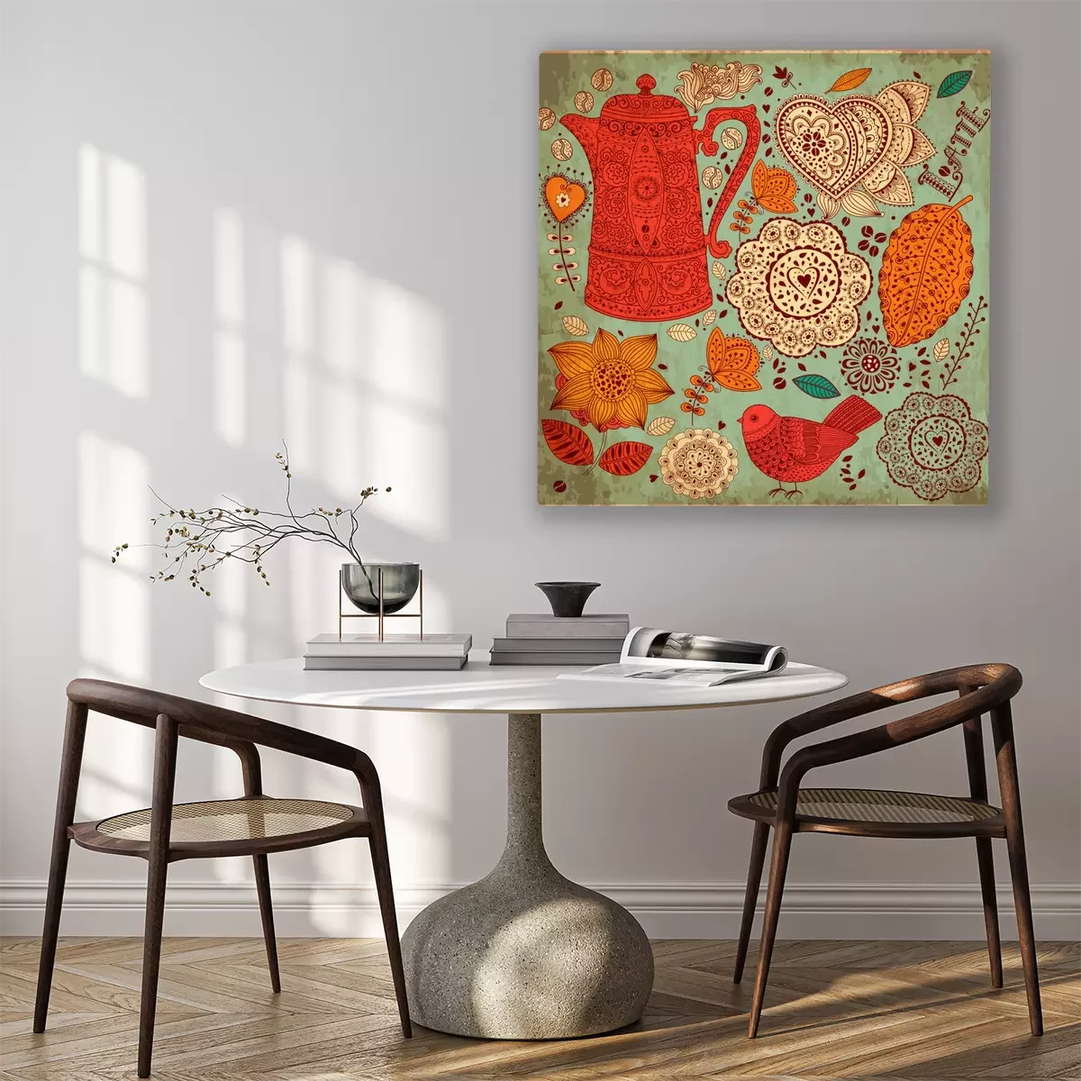 Das Motiv wird auf eine qualitativ hochwertige Leinwand gedruckt, die auf einen Blendrahmen gezogen wird. Da der Aufdruck die Seitenkanten bedeckt, muss das Bild nicht zusätzlich eingerahmt werden. Wir empfehlen außerdem Kompositionen aus mehreren Bildern, die ein harmonisches Ganzes bilden.