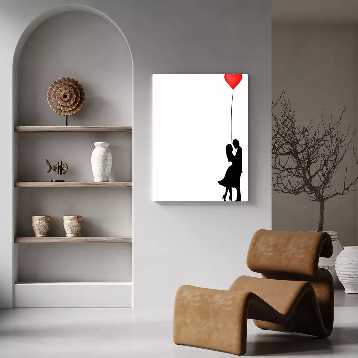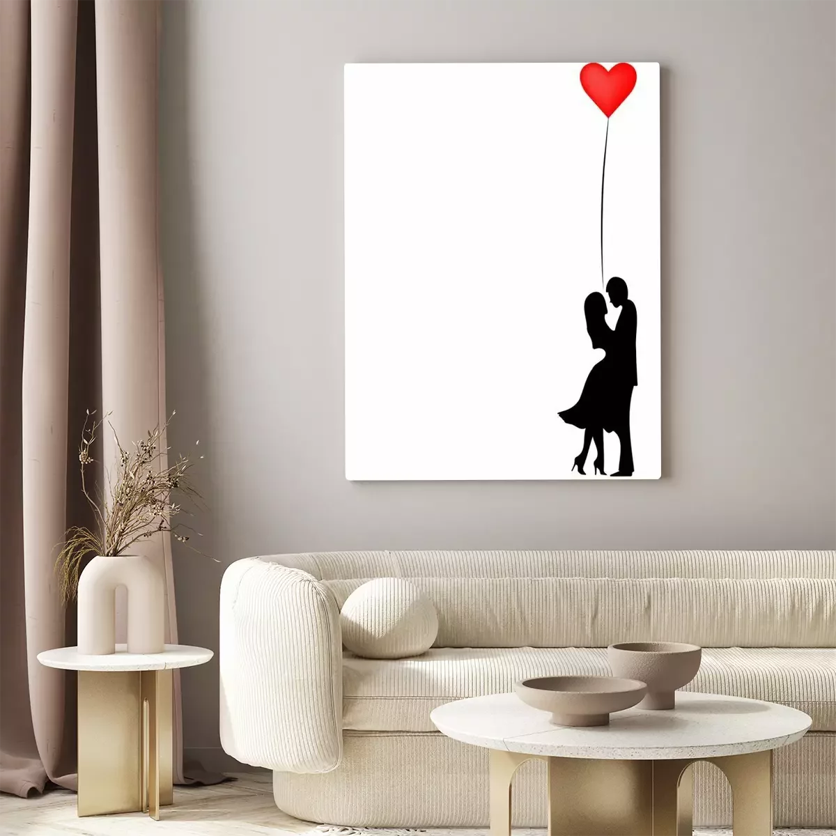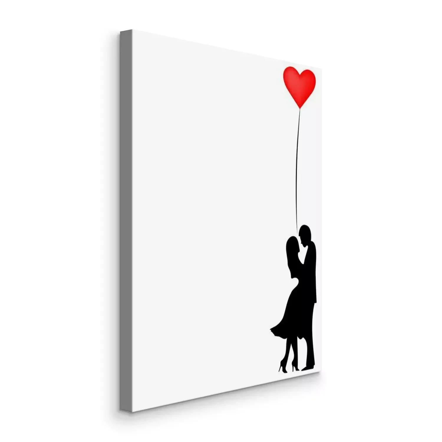 Silhouetten eines verliebten Paares mit einem roten Herzen