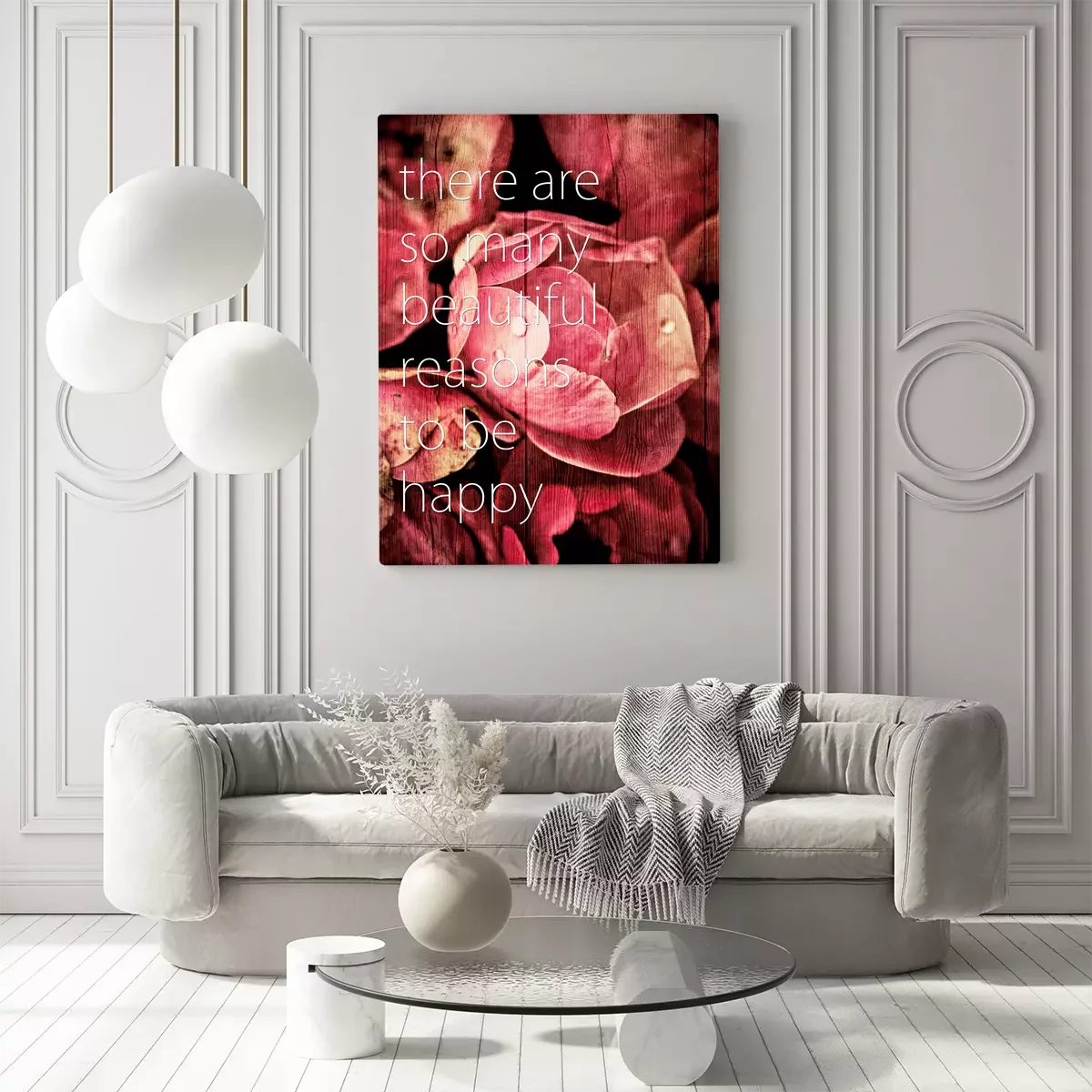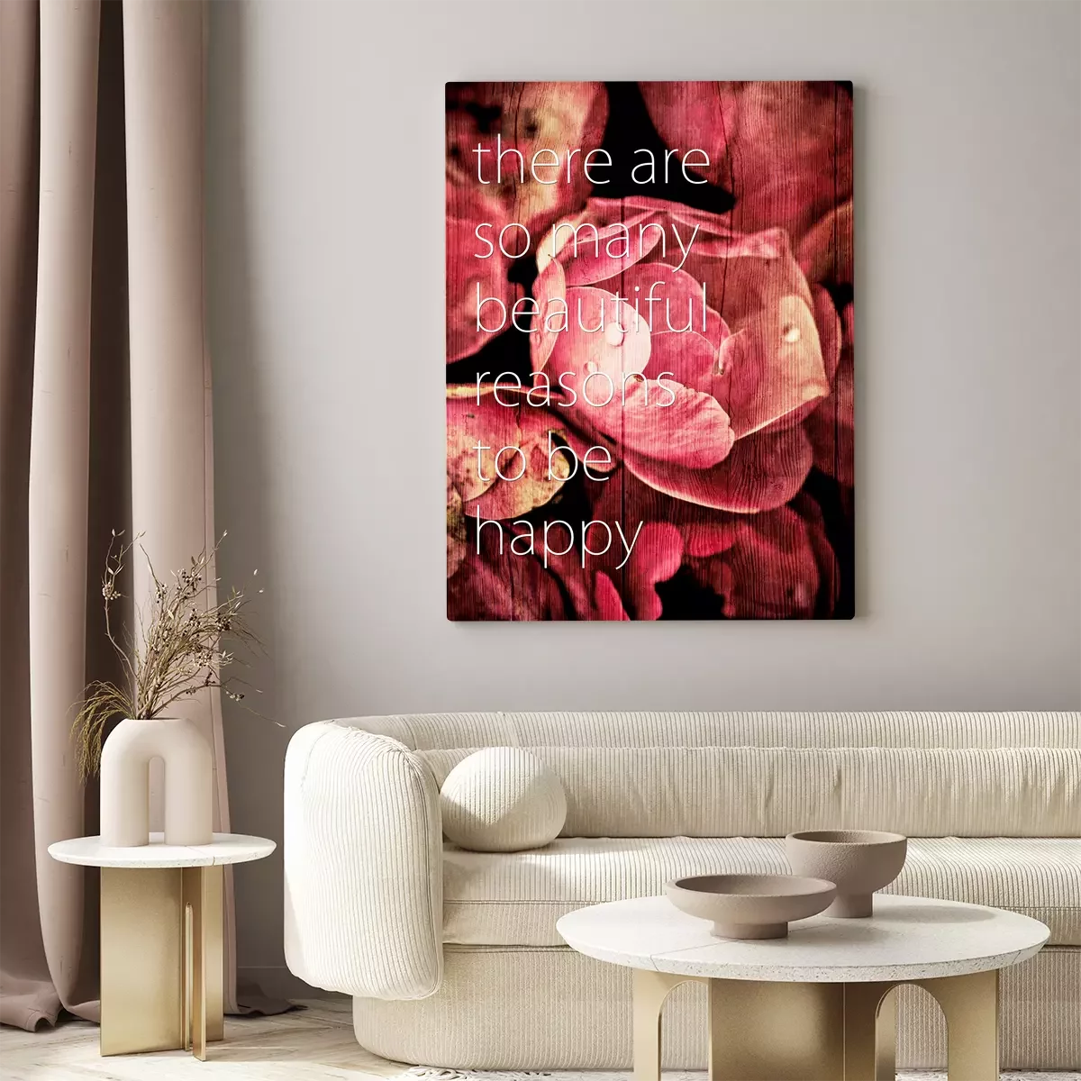 Rosa blumen mit einem zitat über glück