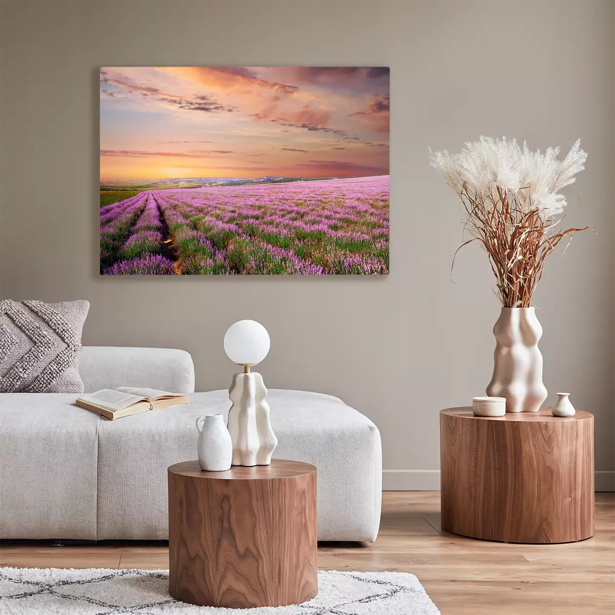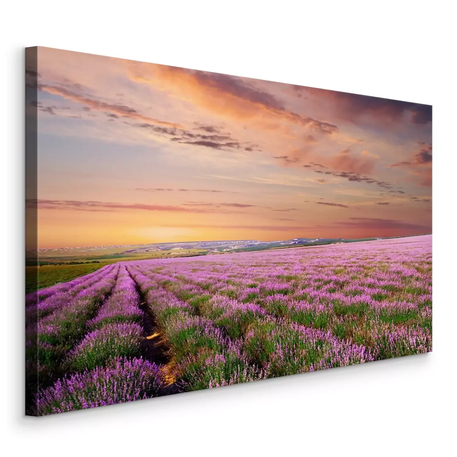 Ein blühendes Lavendelfeld und die untergehende Sonne