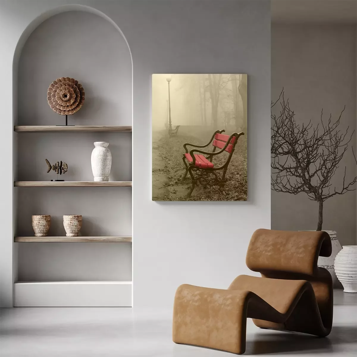 Bild Rote Bank im Hintergrund der Bäume