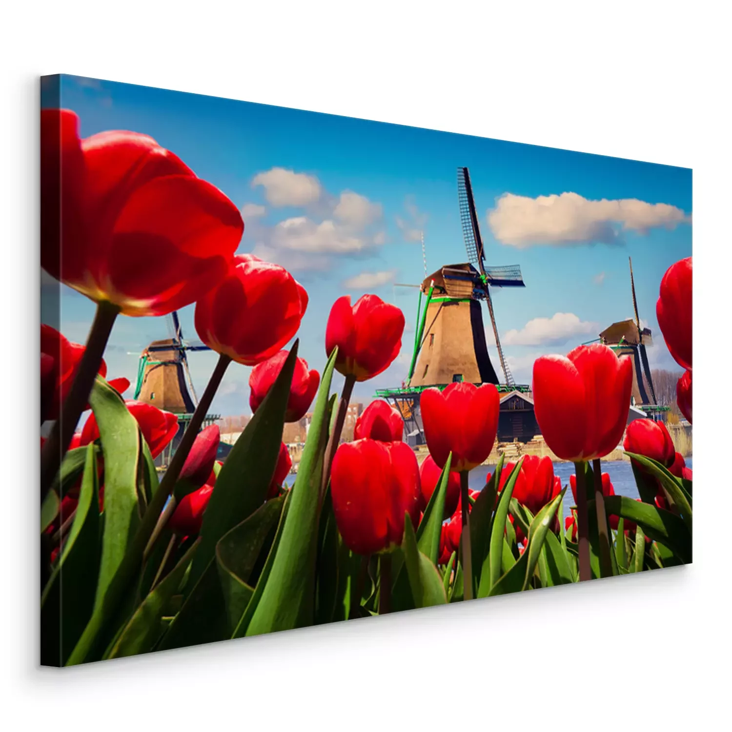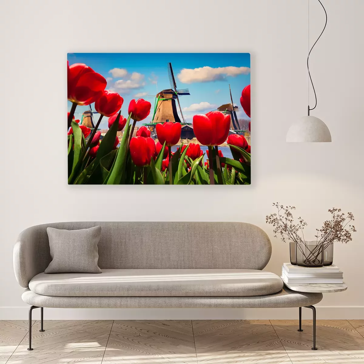 Bild Rote Tulpen vor dem Hintergrund der Windmühle