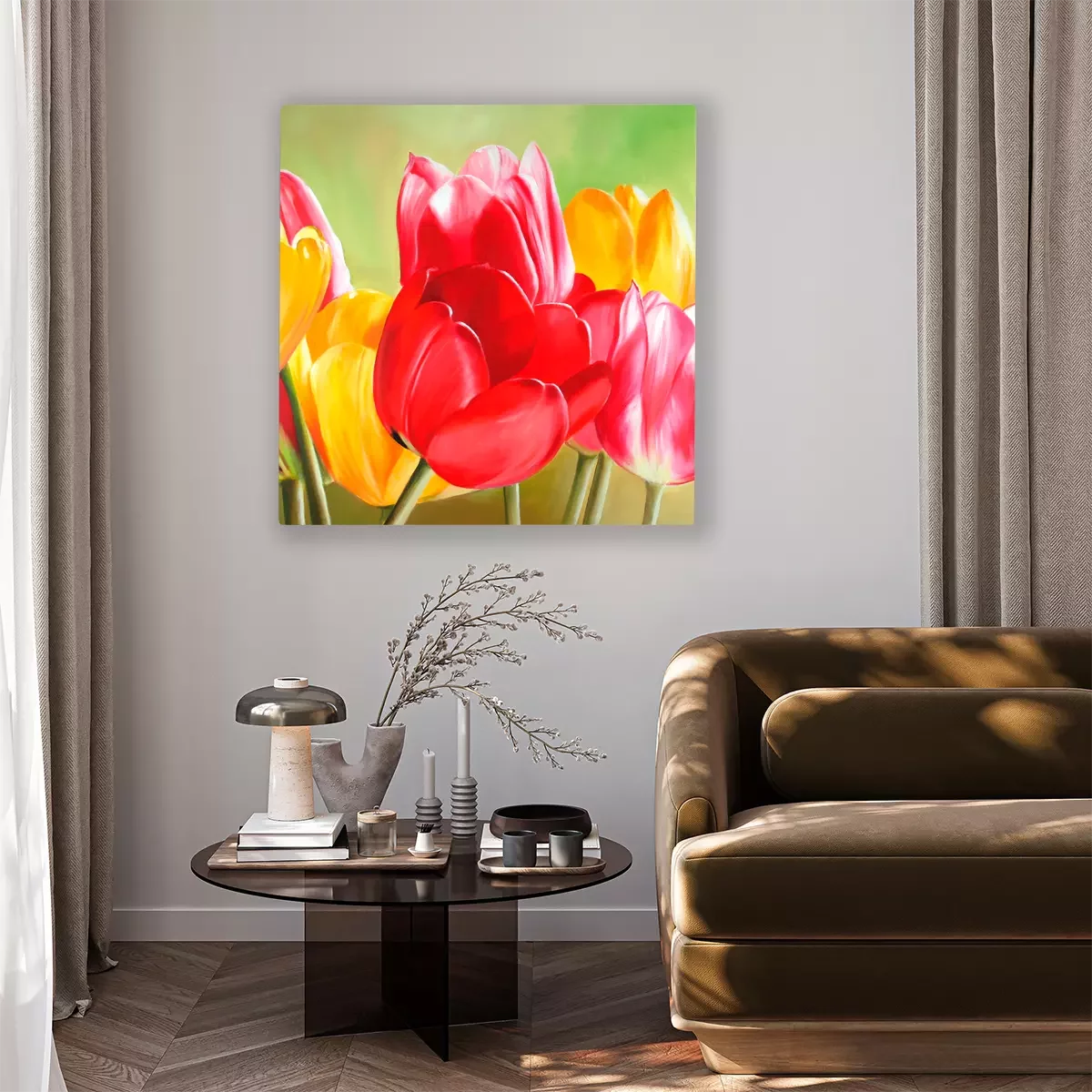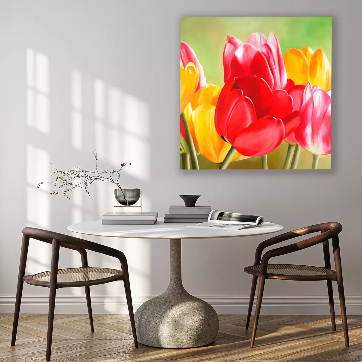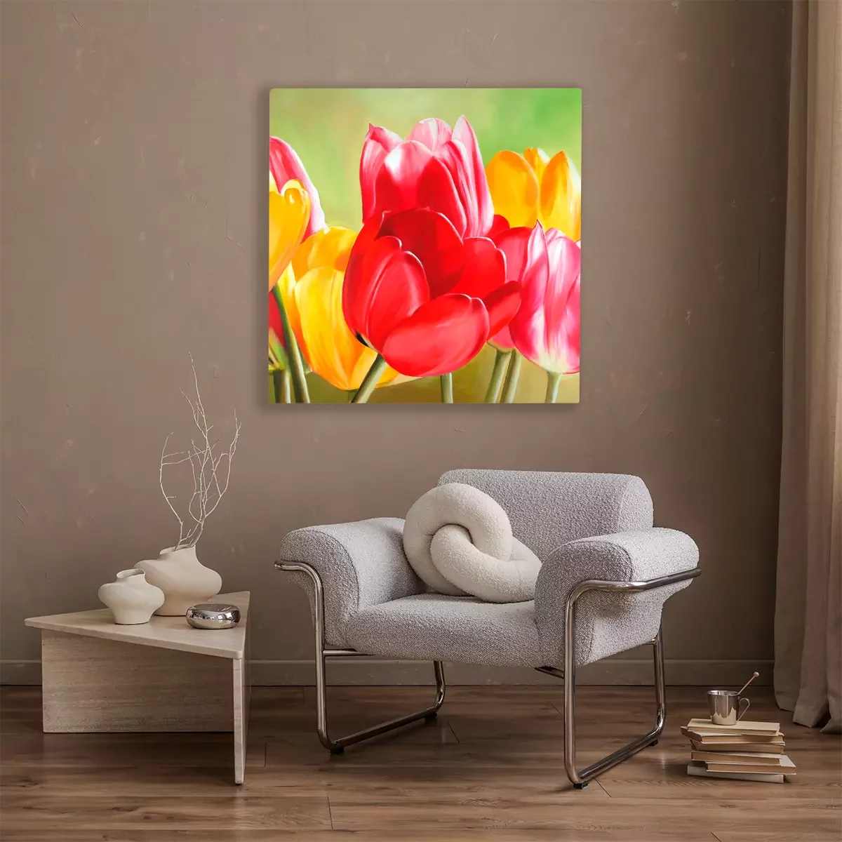 Rote und gelbe tulpen in leuchtenden farben