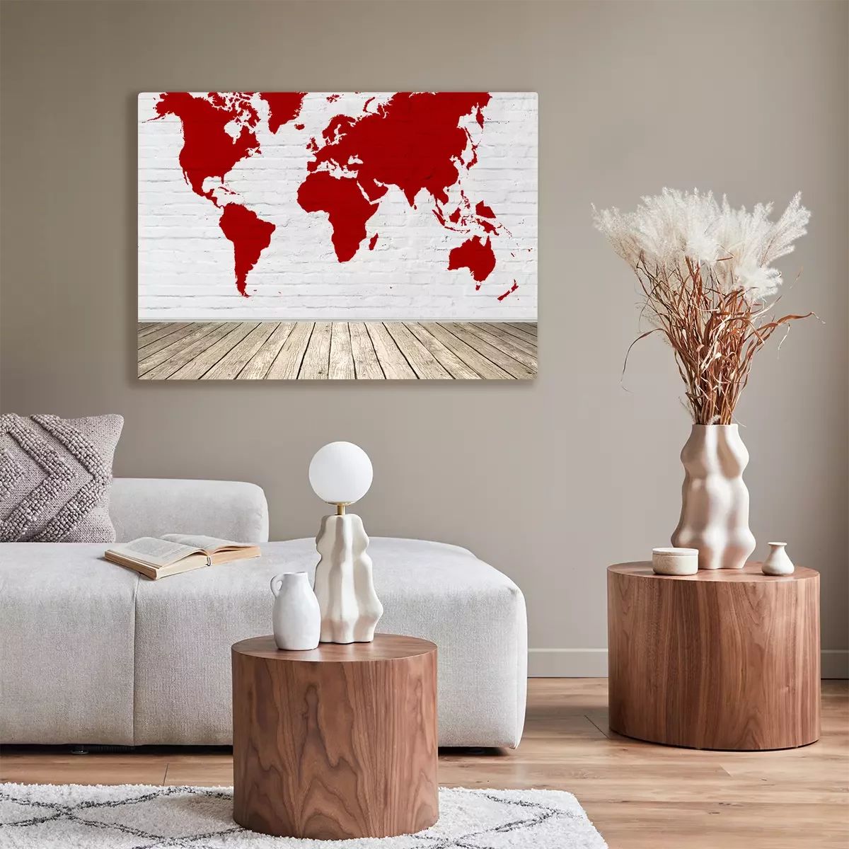 Bild: Rote Weltkarte auf Backstein