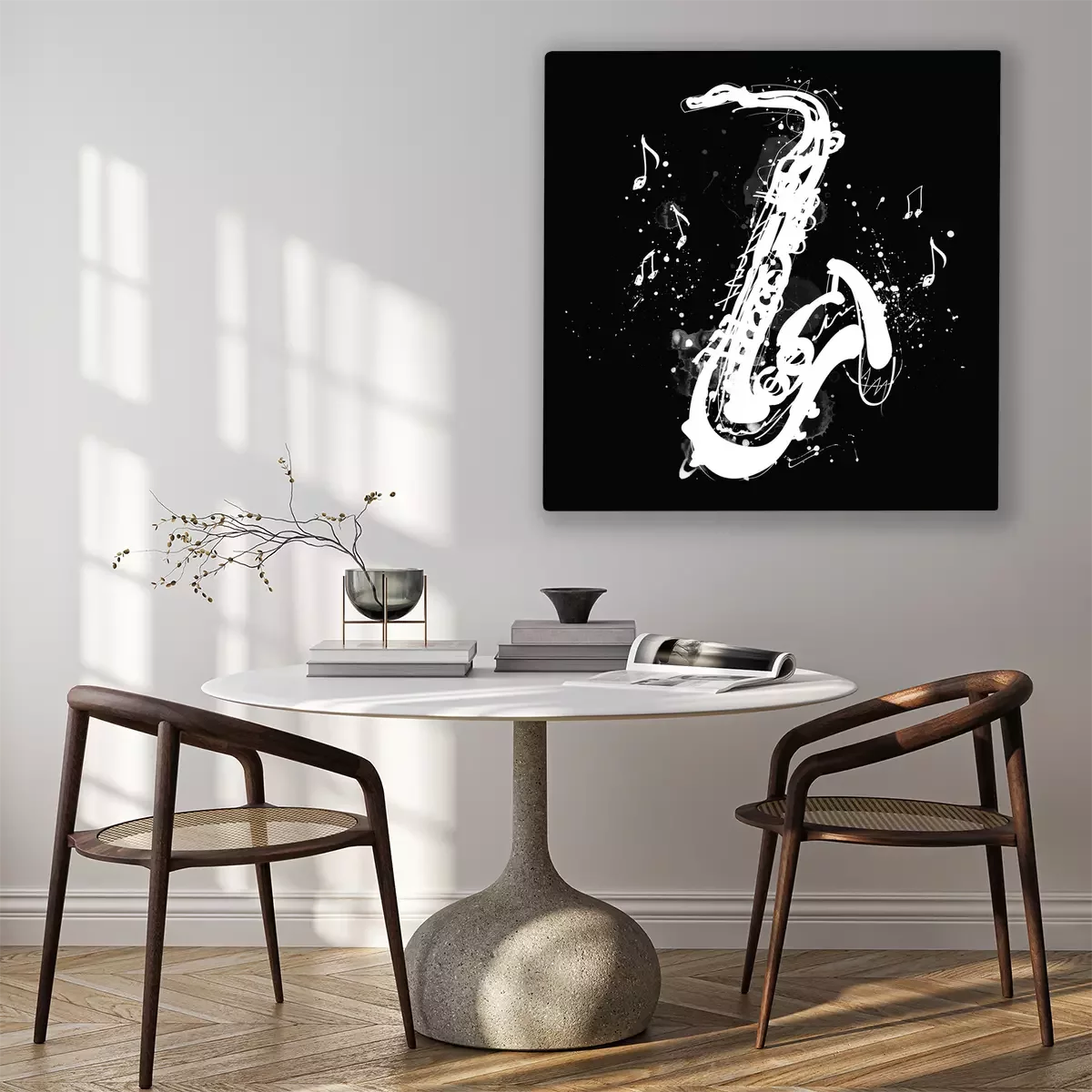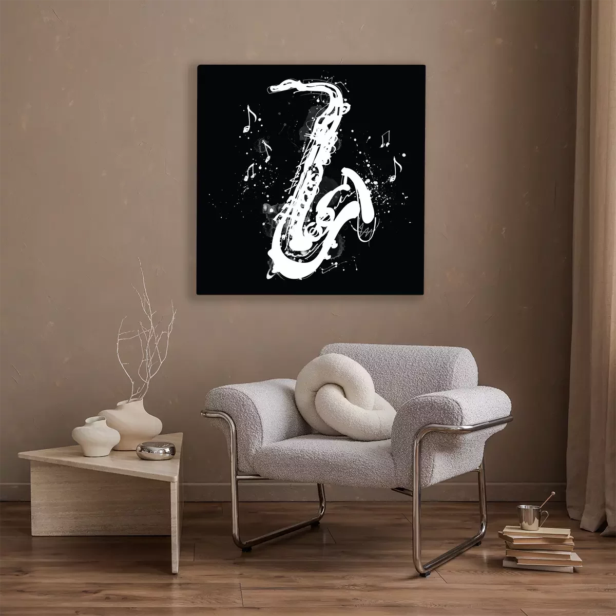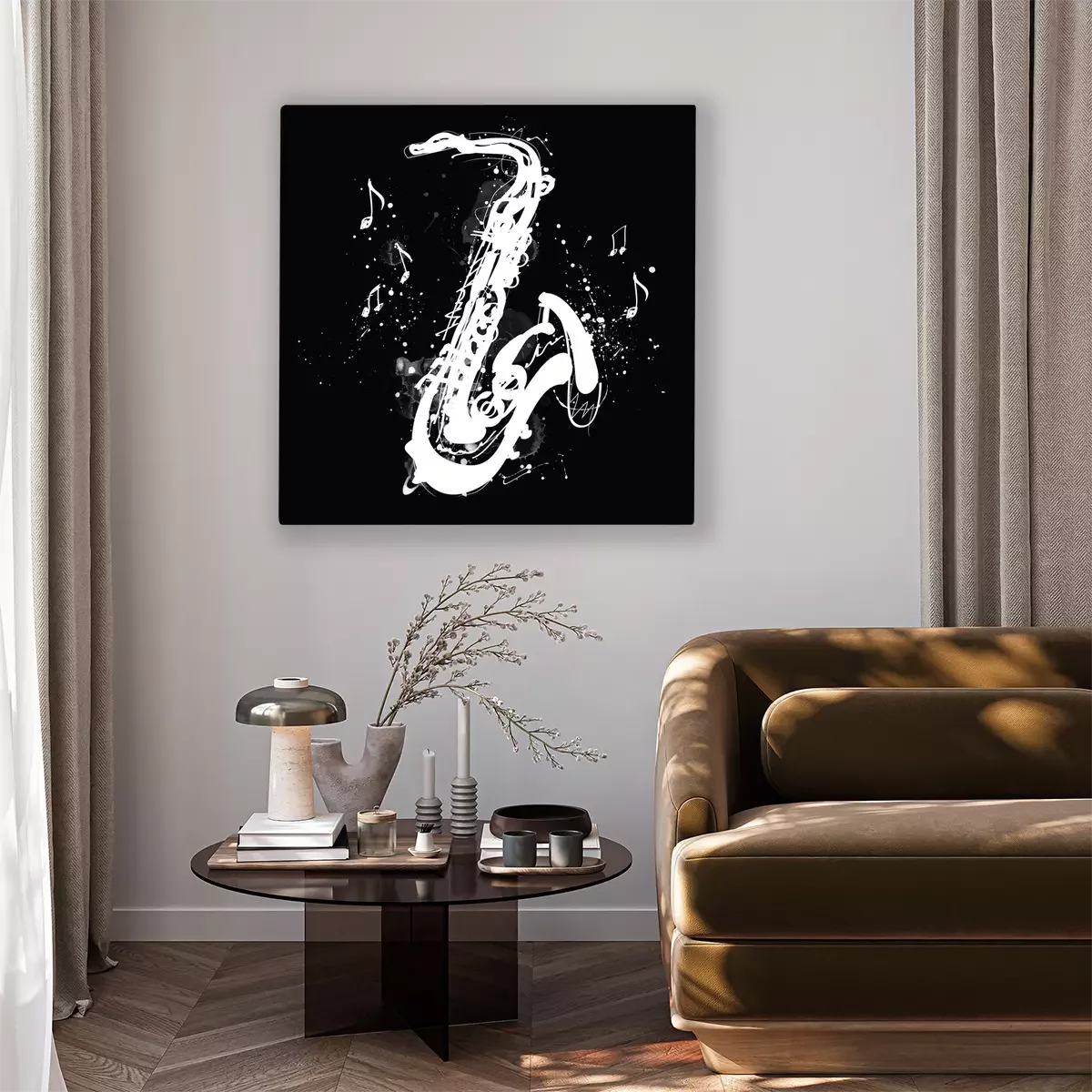 Bild: Saxophon weißes Instrument auf schwarzem Hintergrund