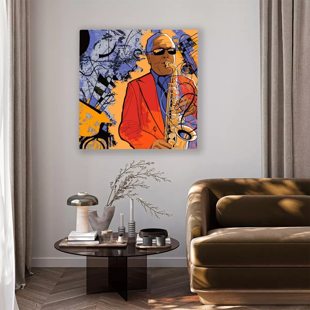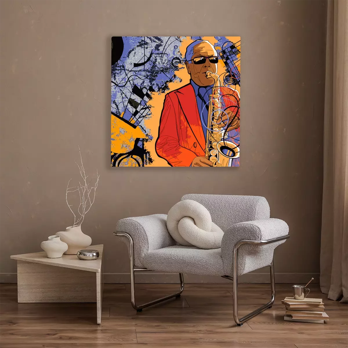 Zwei Jazzmusiker vor dem Hintergrund der Wolkenkratzer