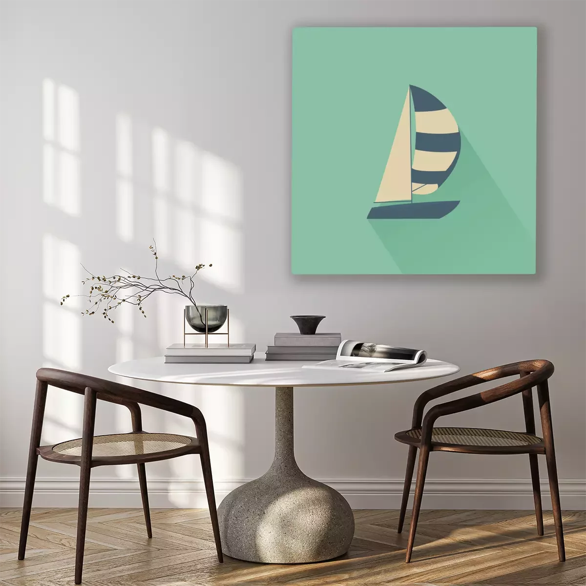 Bild: Schiff mit weiß-blauen Segeln gezeichnet