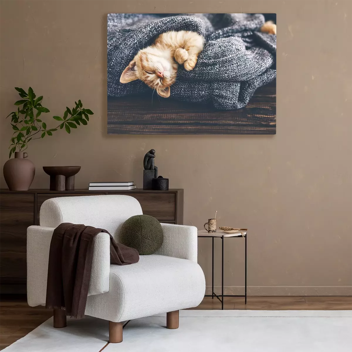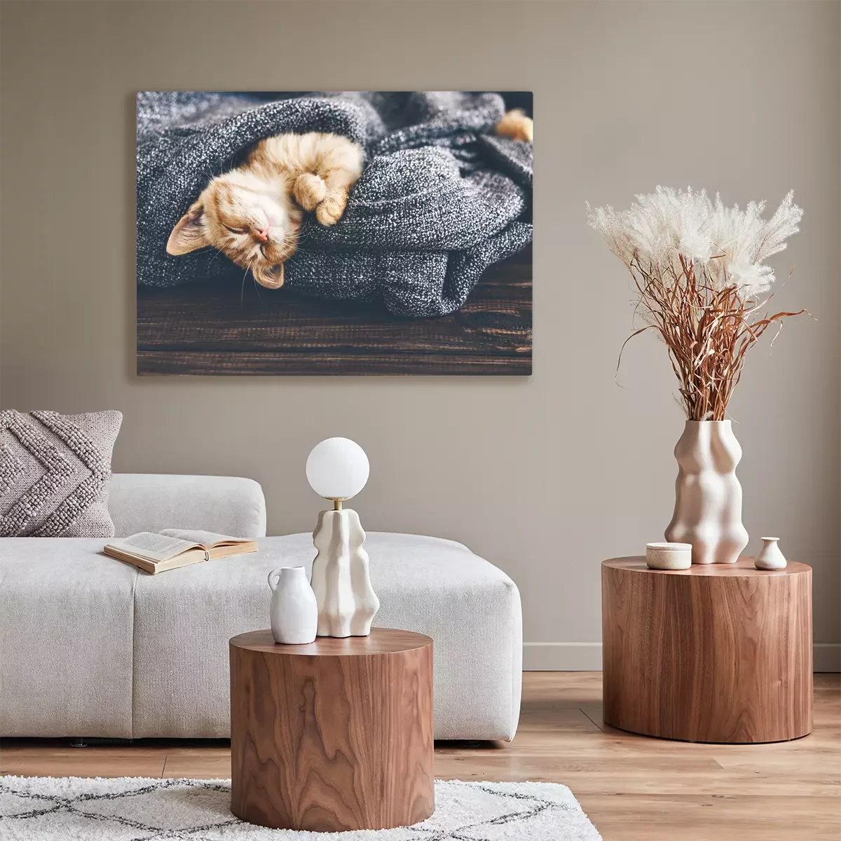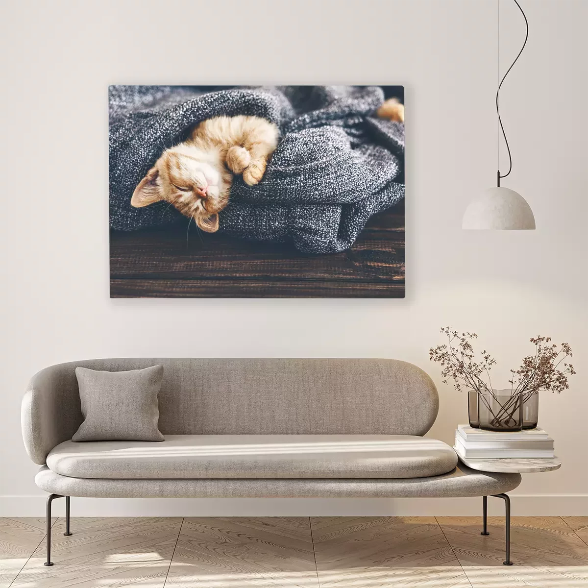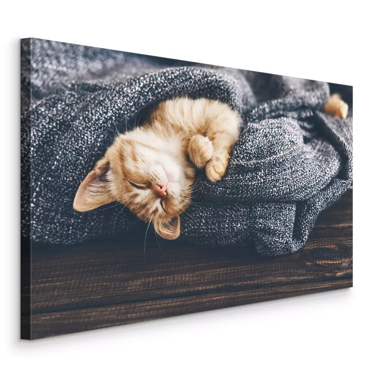 Bild Schlafendes Kätzchen in die Decke gehüllt