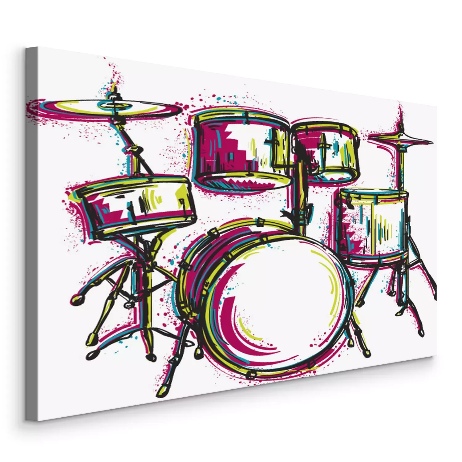 Bild: Schlagzeug mit Spritzern im Aquarellstil. Bunte Hand gezeichnet Vektor-Illustration