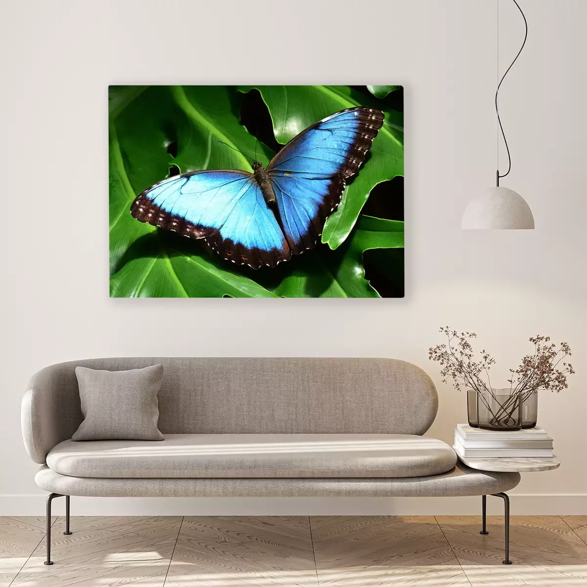 Blauer Schmetterling auf einem Blatt