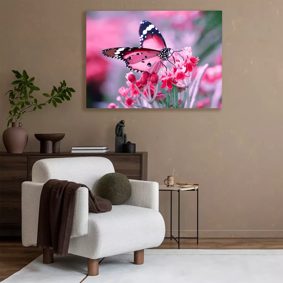 Brauner Schmetterling auf Blumen sitzend