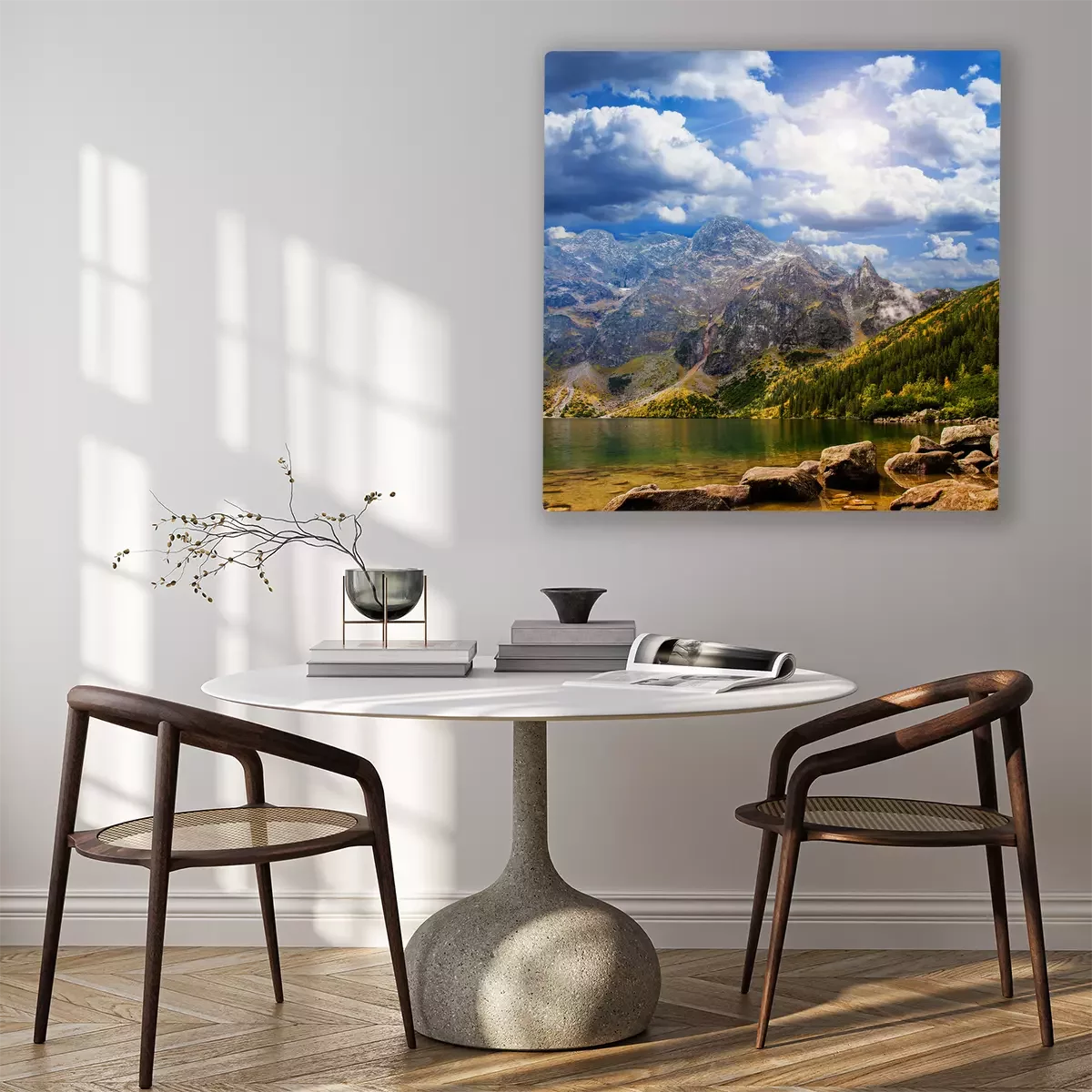 Das Motiv wird auf eine qualitativ hochwertige Leinwand gedruckt, die auf einen Blendrahmen gezogen wird. Da der Aufdruck die Seitenkanten bedeckt, muss das Bild nicht zusätzlich eingerahmt werden. Wir empfehlen außerdem Kompositionen aus mehreren Bildern, die ein harmonisches Ganzes bilden.