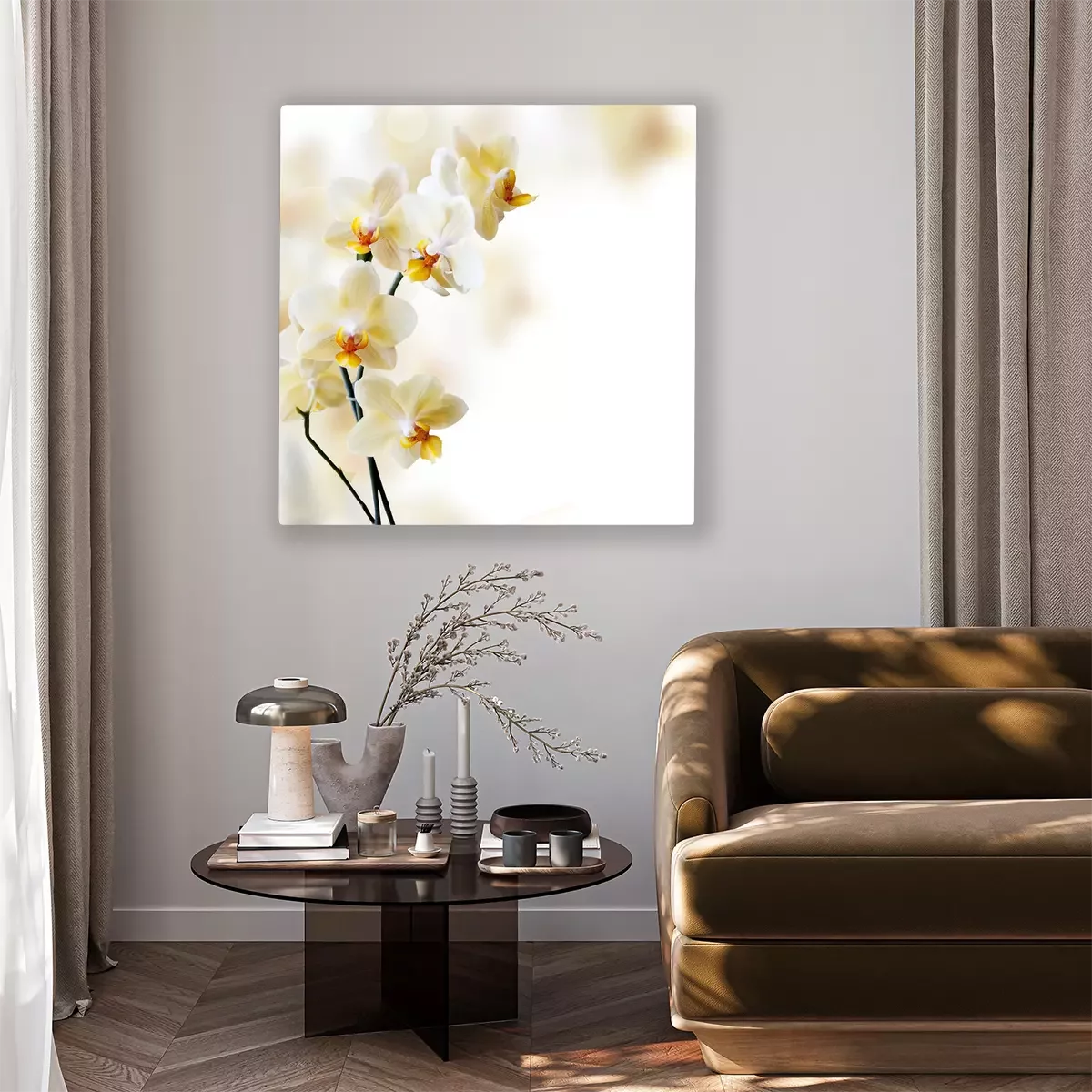 Zweig einer gelben OrchideenblüteFototapete