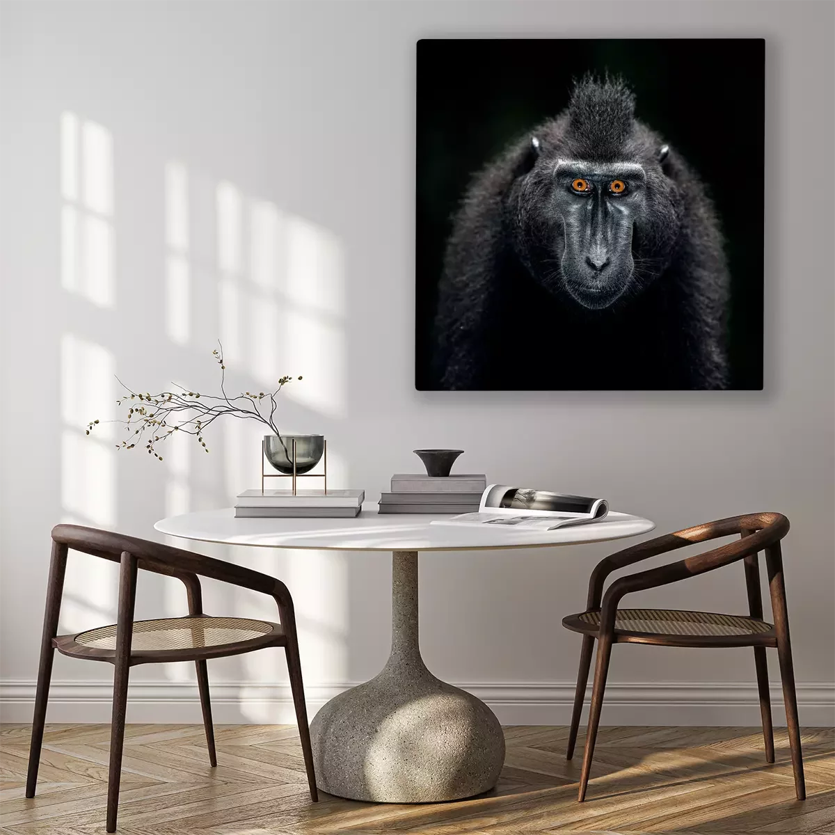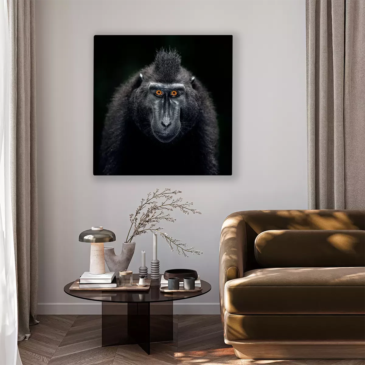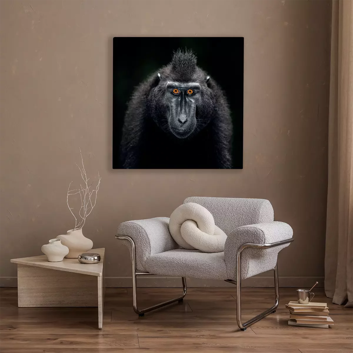 Bild: Schopfmakak auf schwarzem Hintergrund
