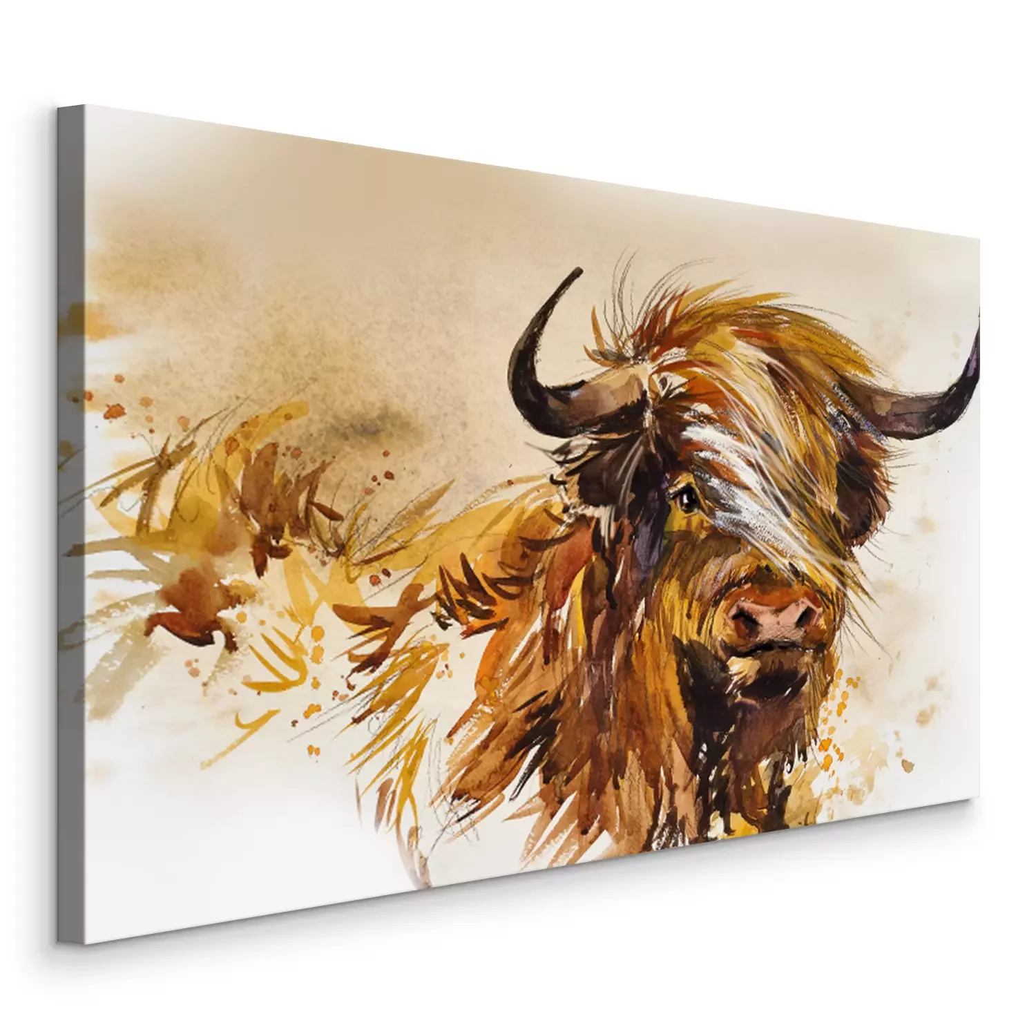 Bild Schottischer Stier mit Aquarellfarben gemalt