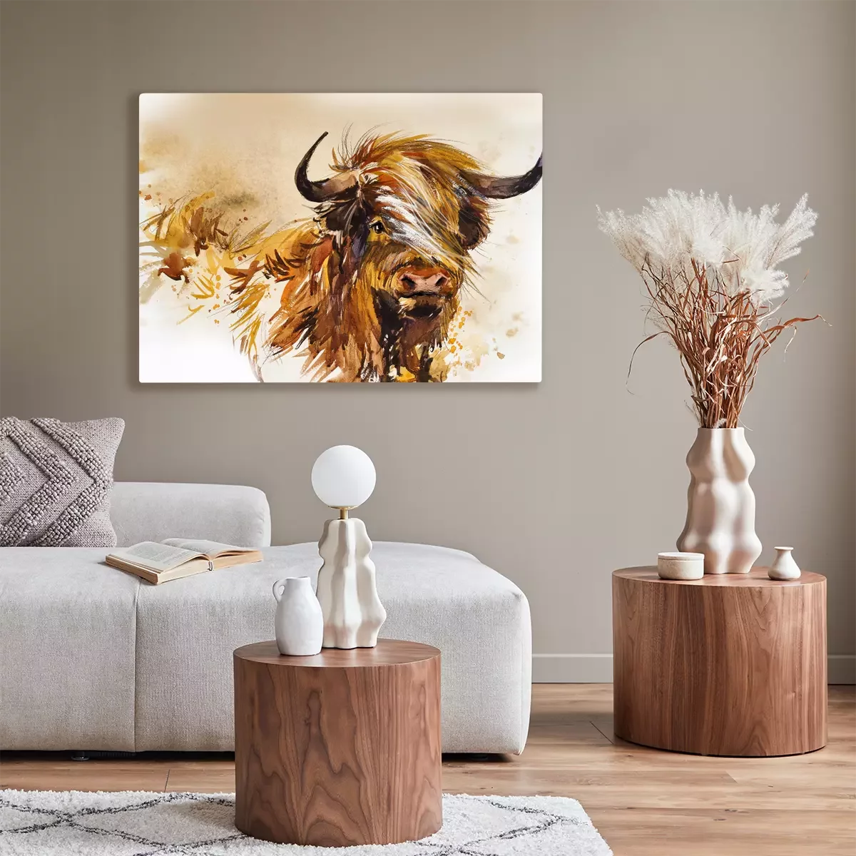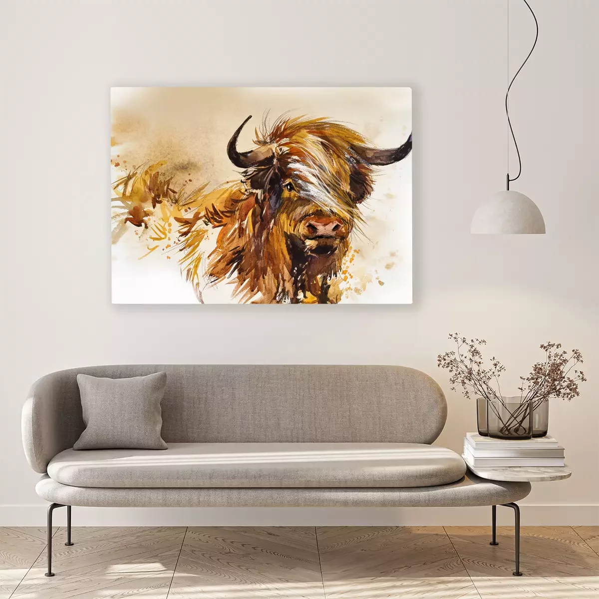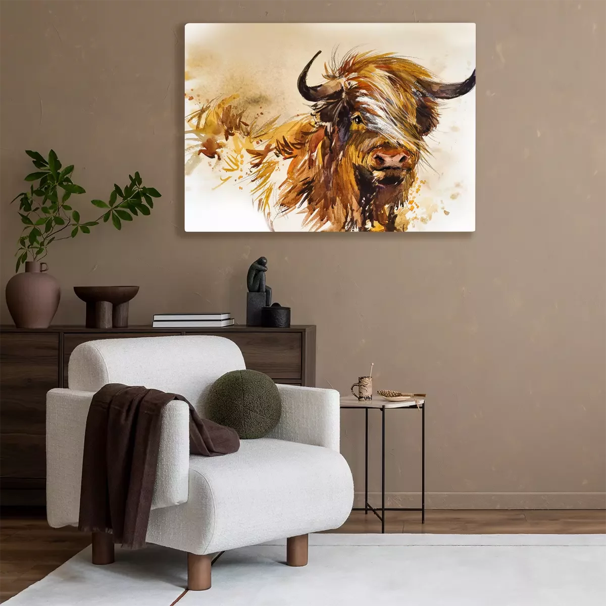 Bild: Schottischer Stier mit Aquarellfarben gemalt