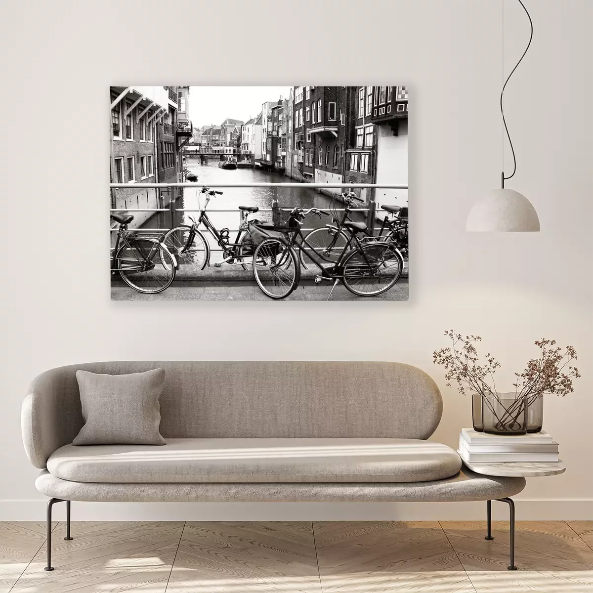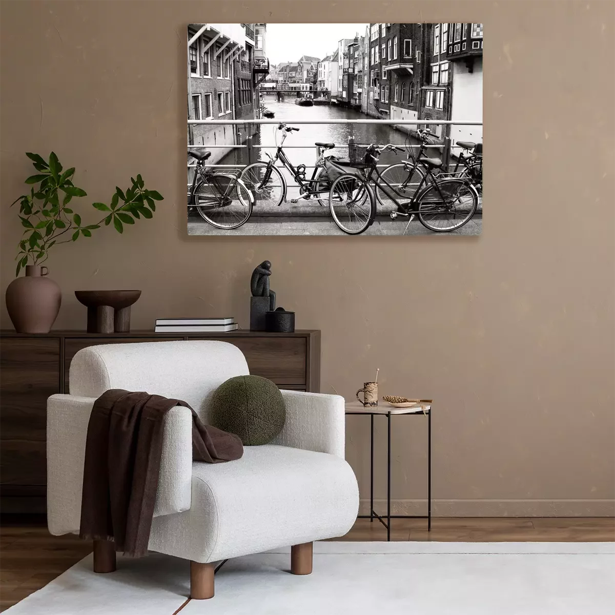 Bild Schwarz-weiße Brücke mit Fahrrädern