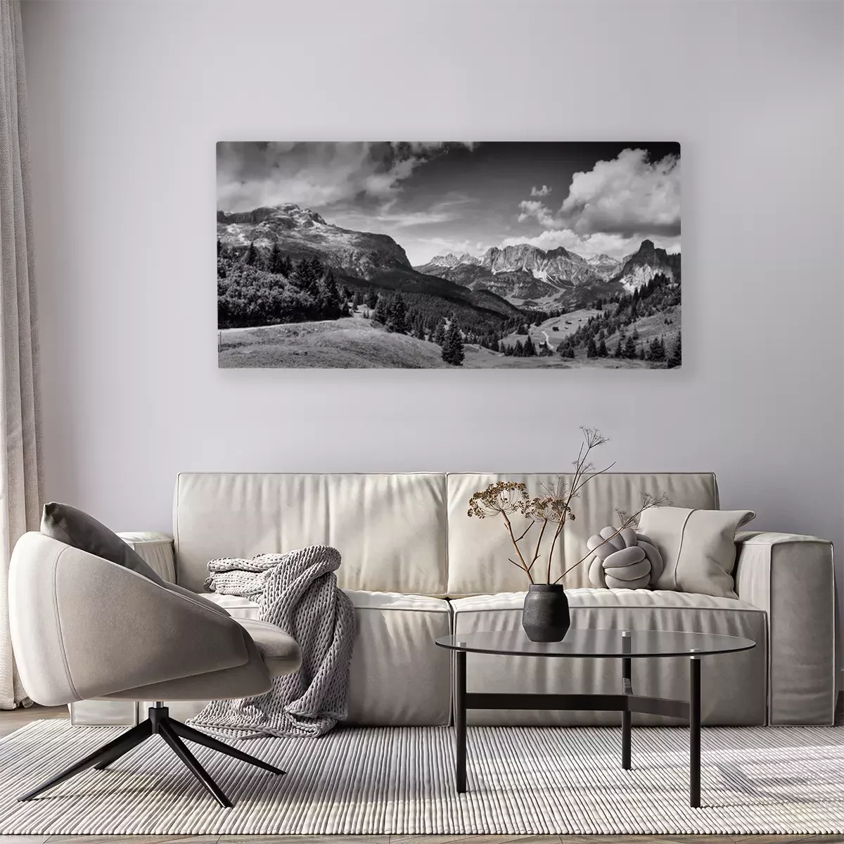 Bild: Schwarz-weiße Dolomitberge