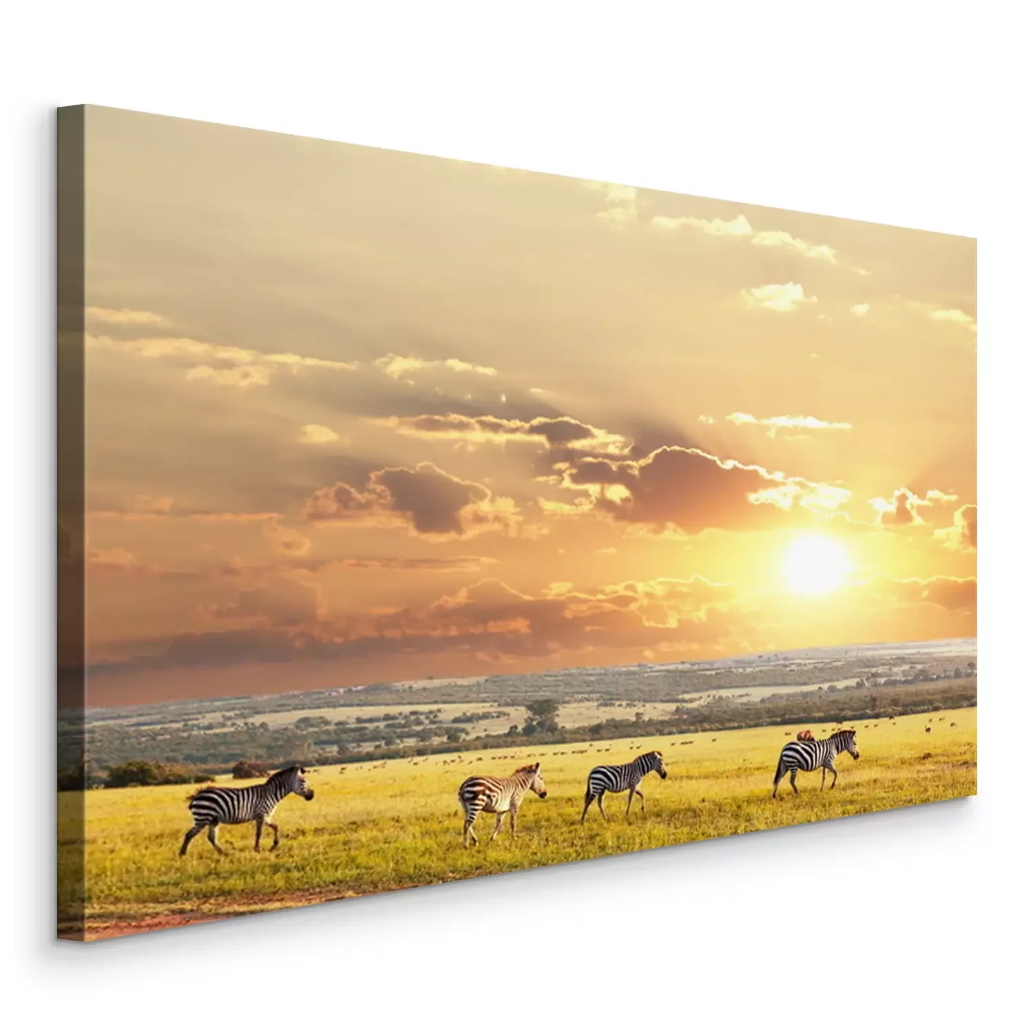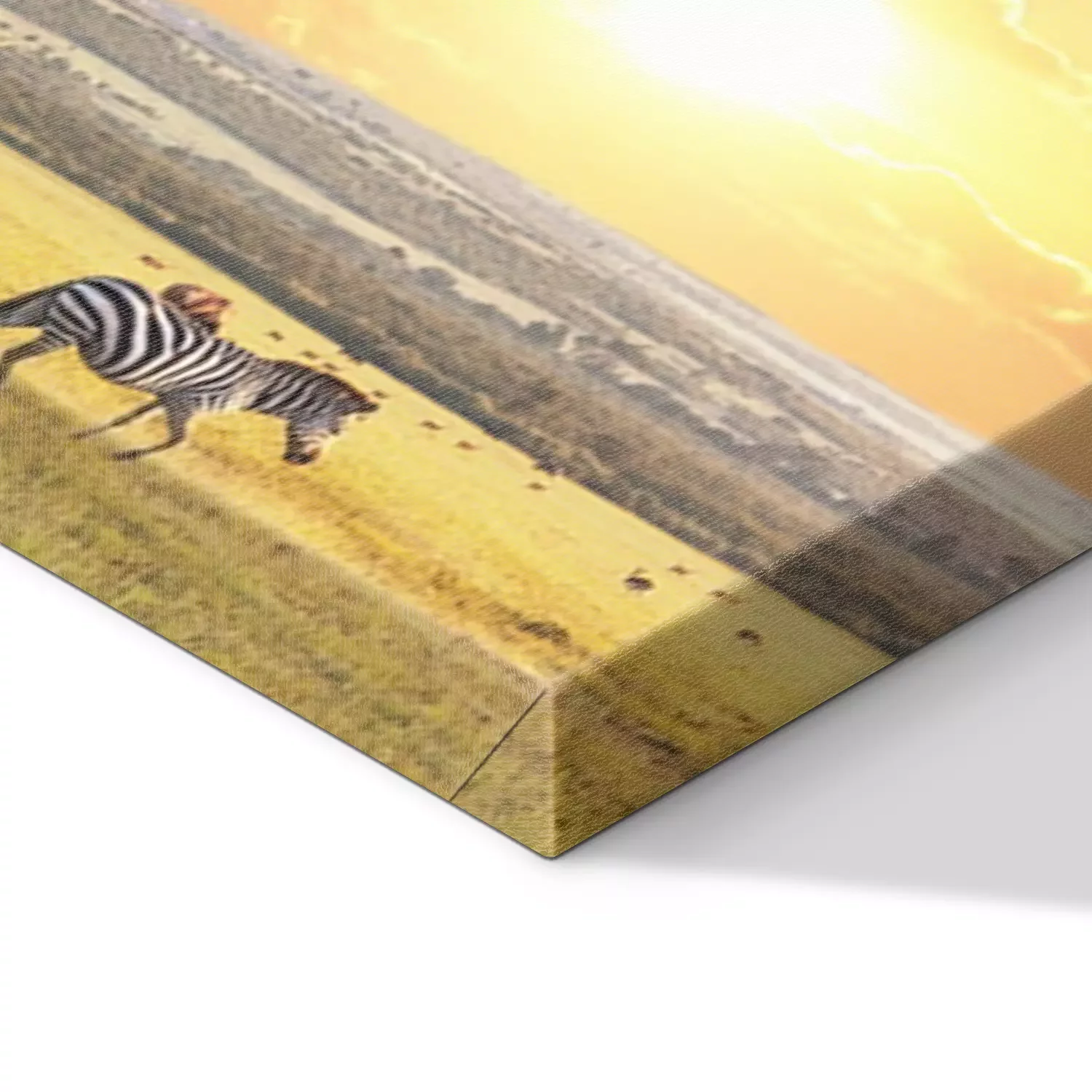 Sonnenuntergang in der afrikanischen Savanne mit Zebras