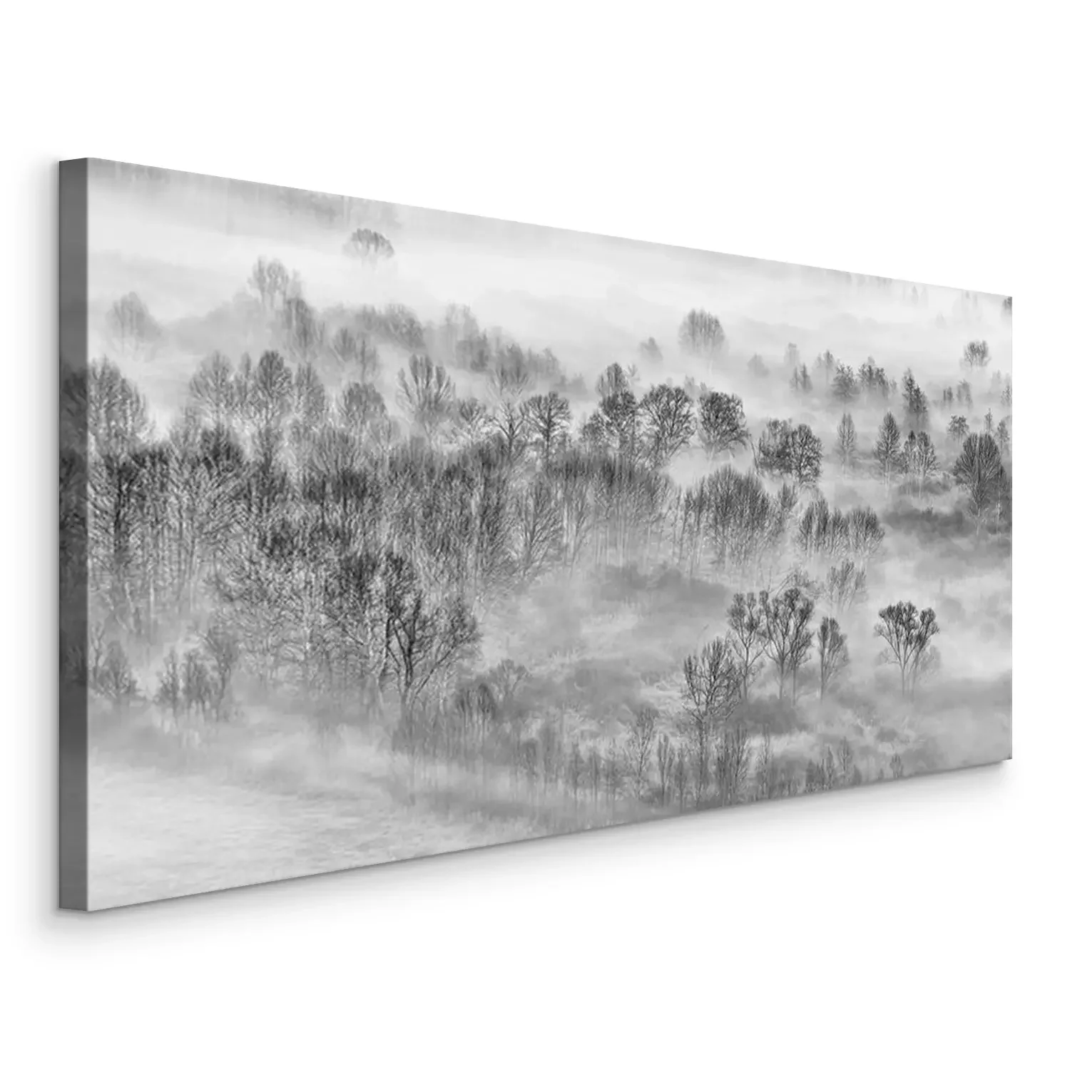 Bild Schwarz-weißer düsterer Wald im Nebel