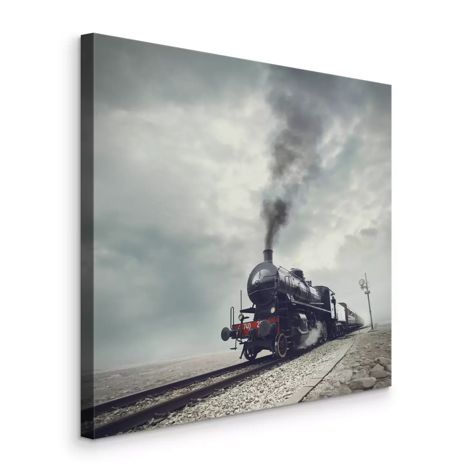 Bild: Schwarze Dampfmaschine und bewölkter Himmel