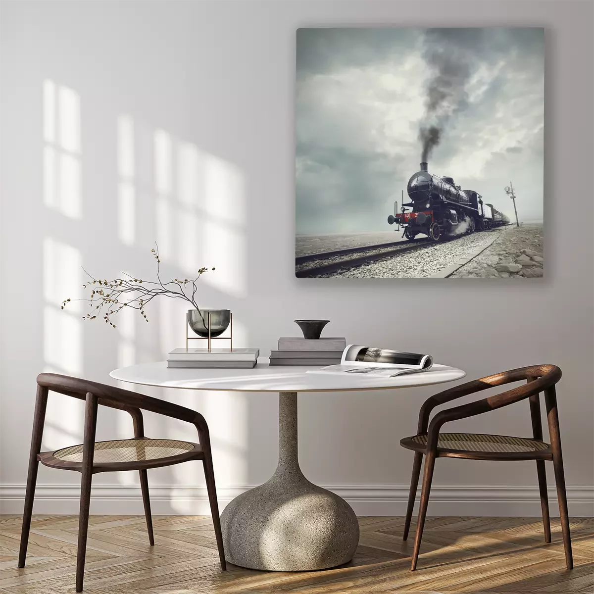 Bild Schwarze Dampfmaschine und bewölkter Himmel