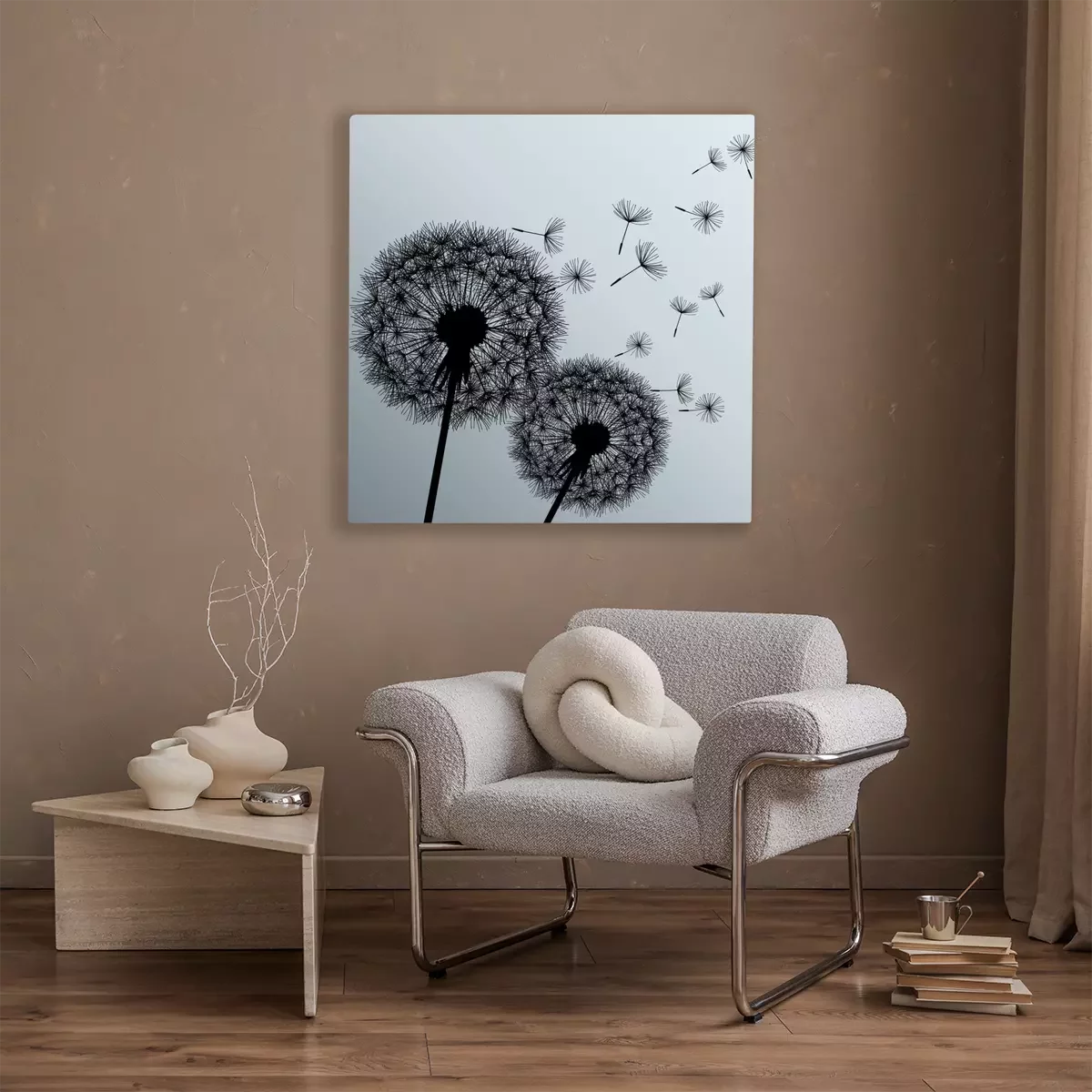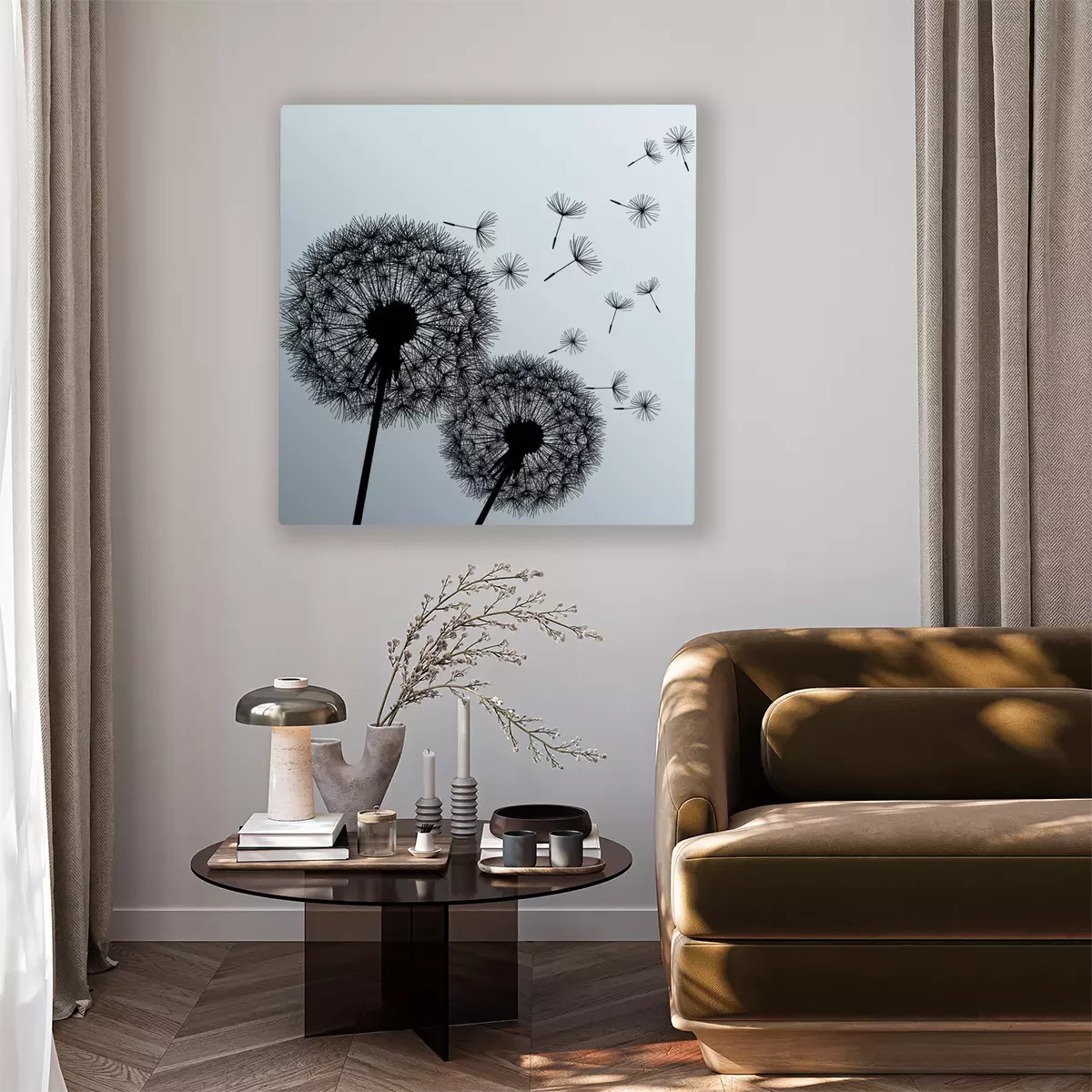 Bild Schwarze Pusteblumen auf grauem Hintergrund
