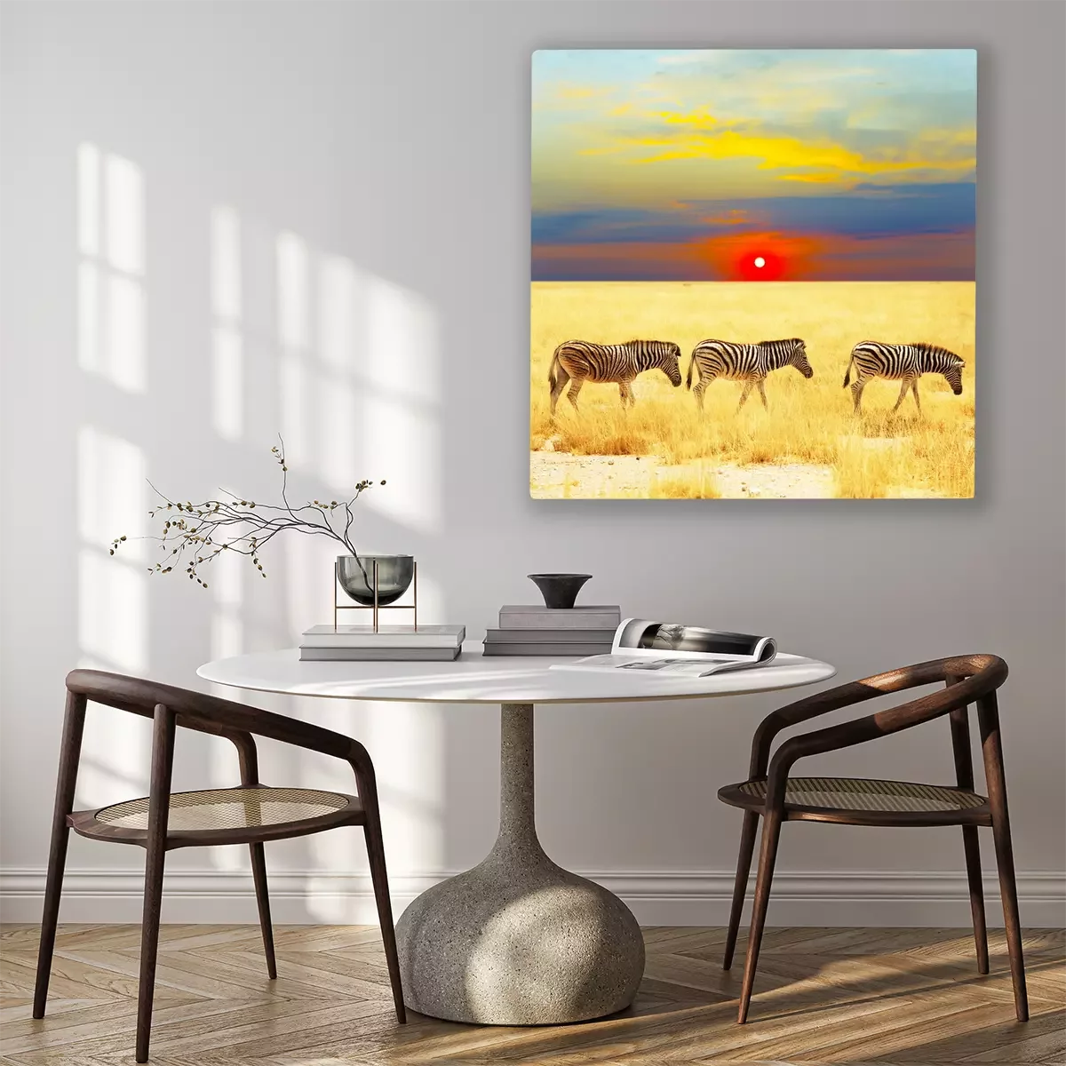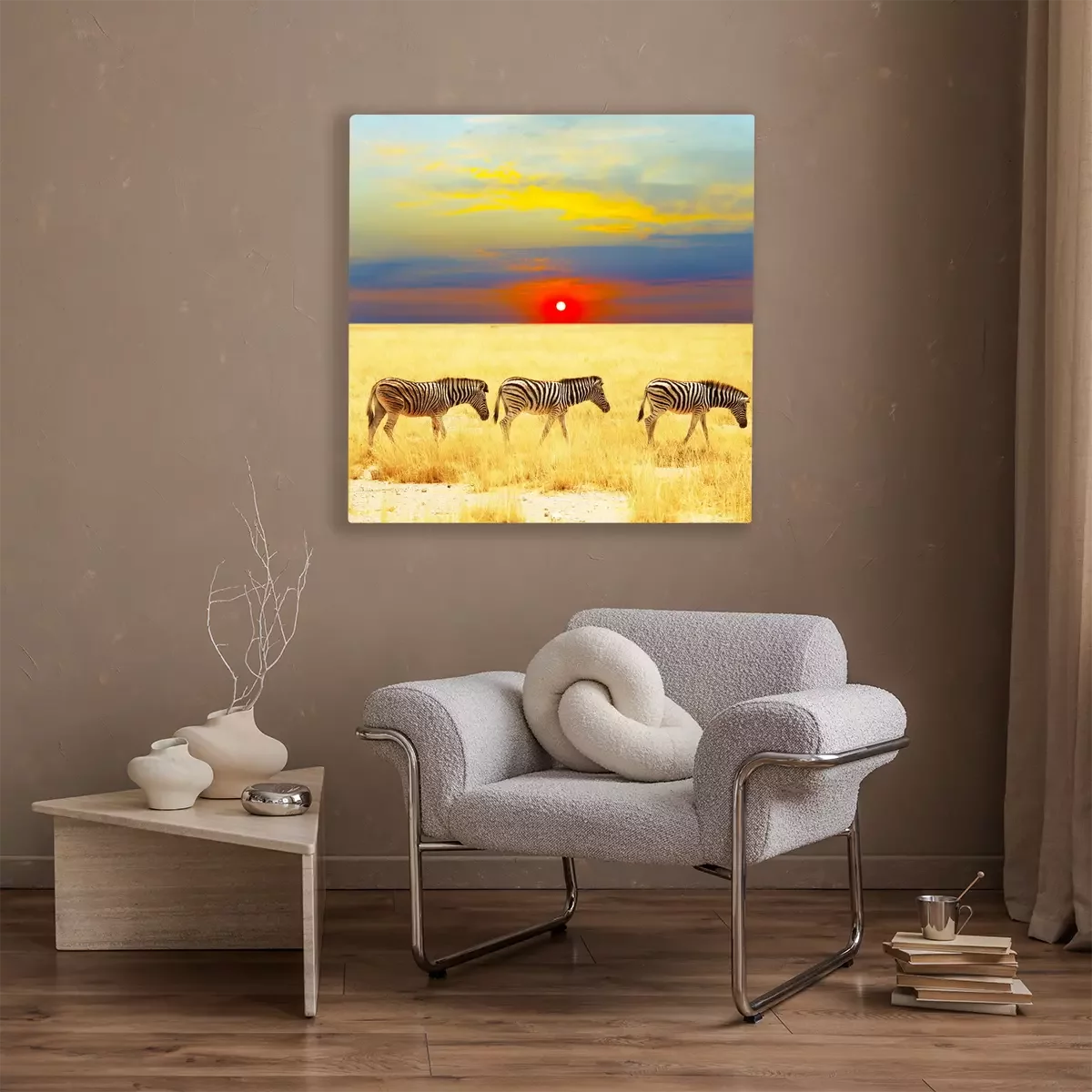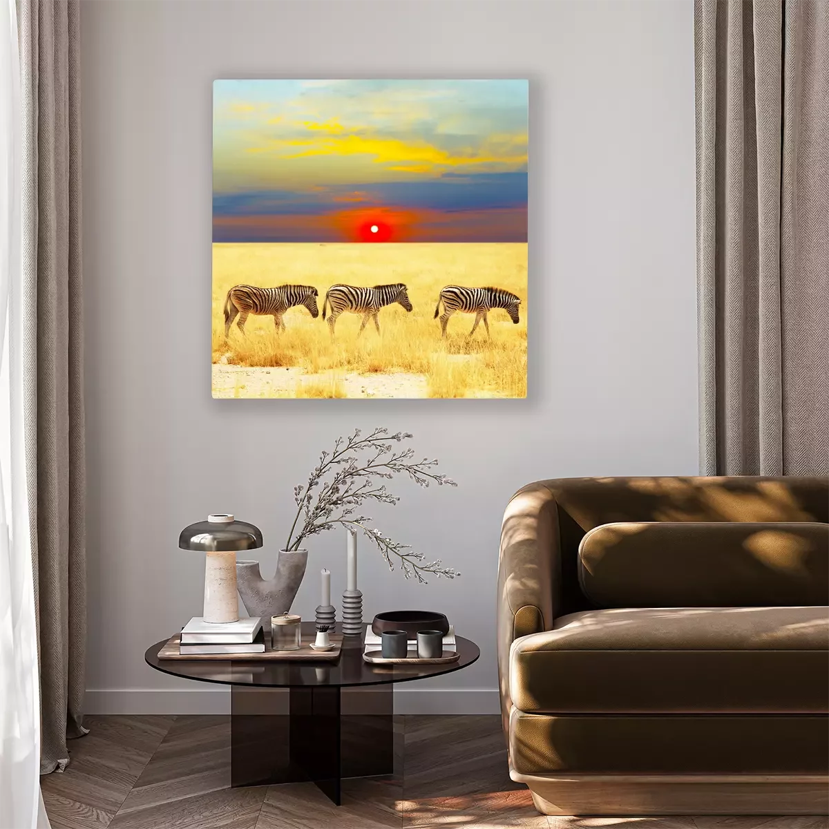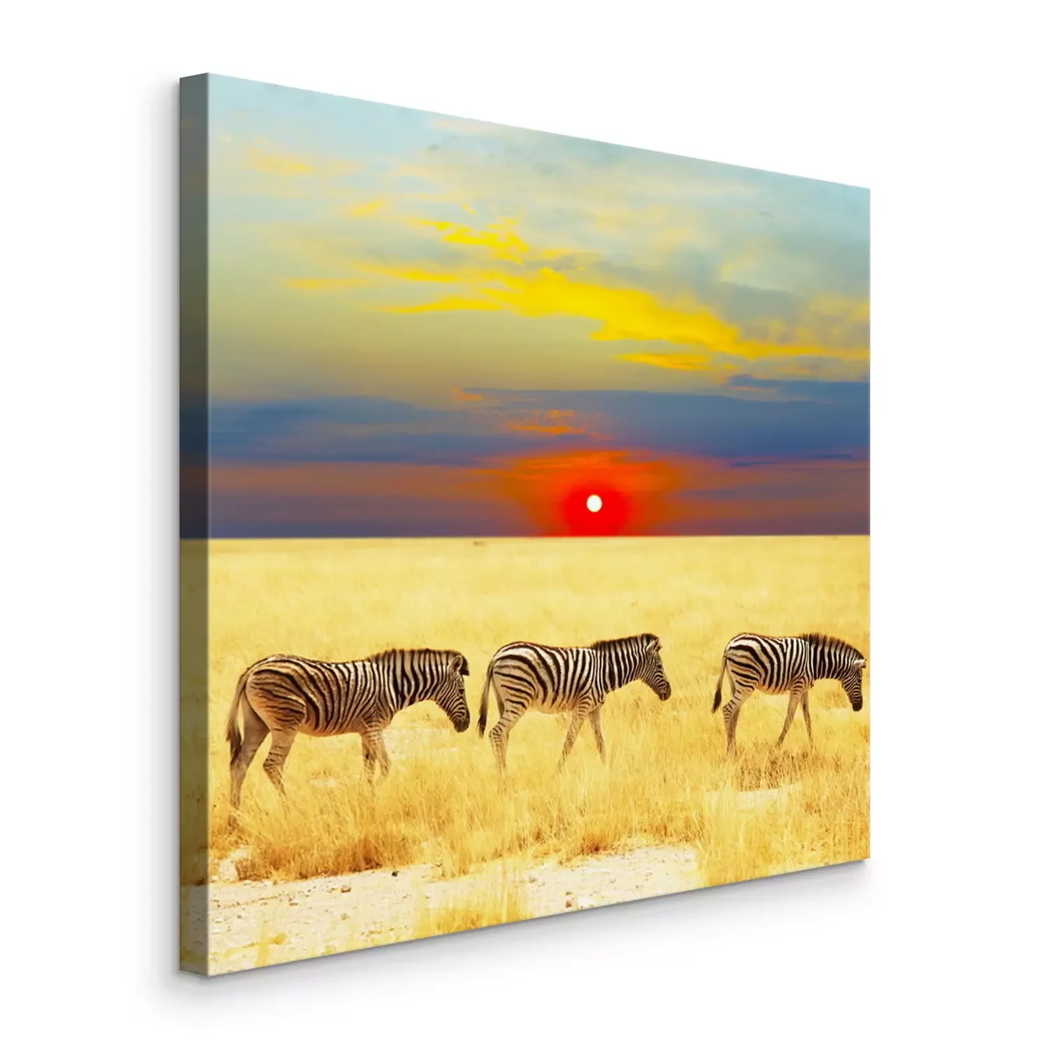 Sonnenuntergang in der afrikanischen Savanne mit Zebras