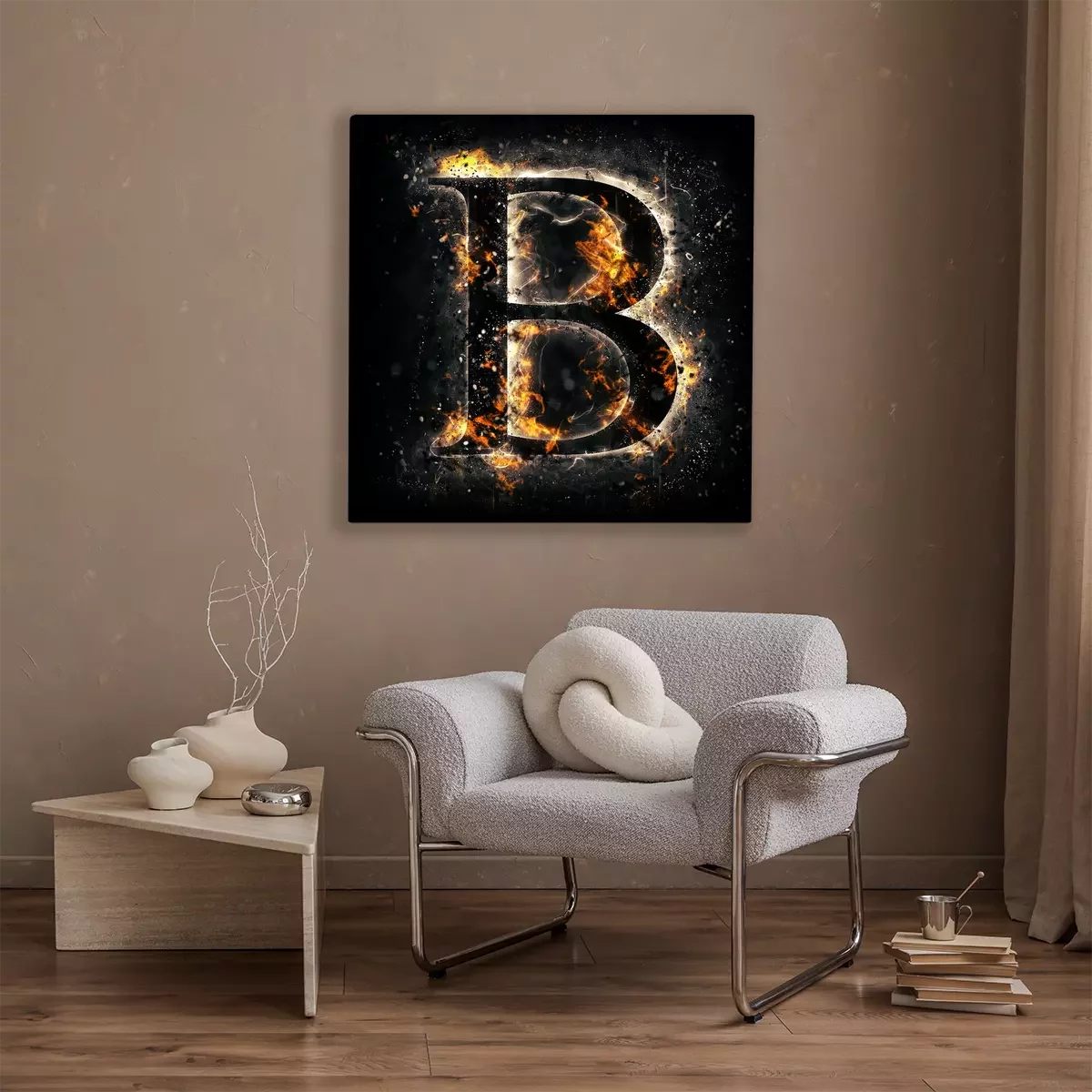 Bild Schwarzer Buchstabe des Alphabets in Flammen