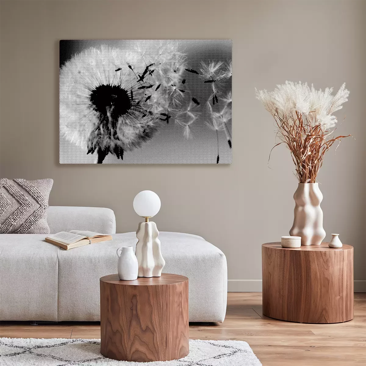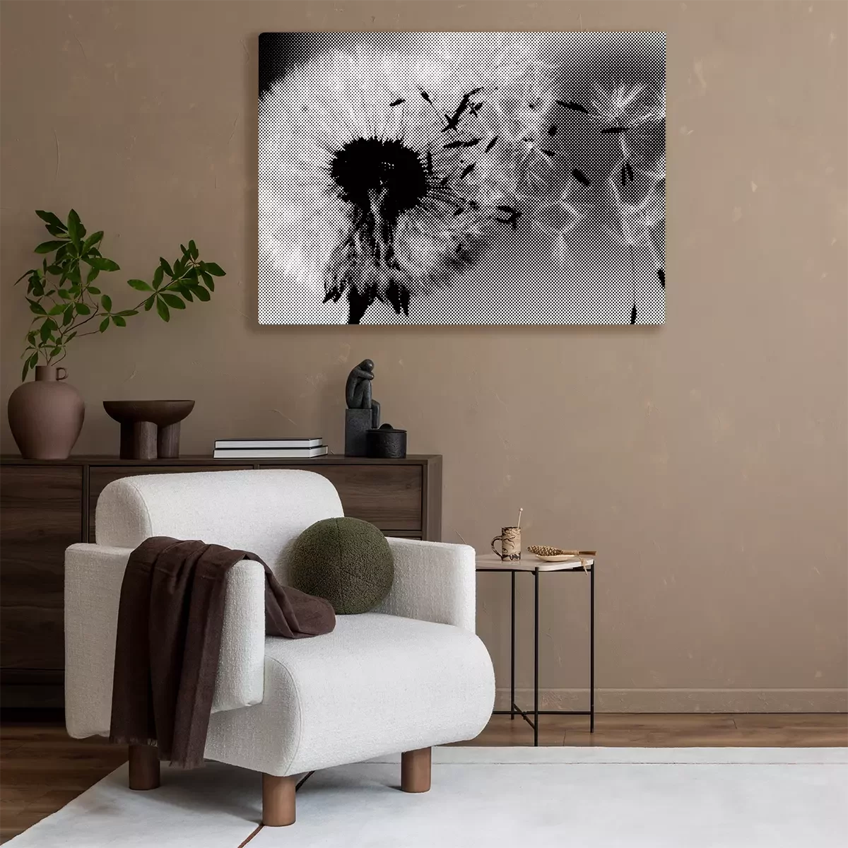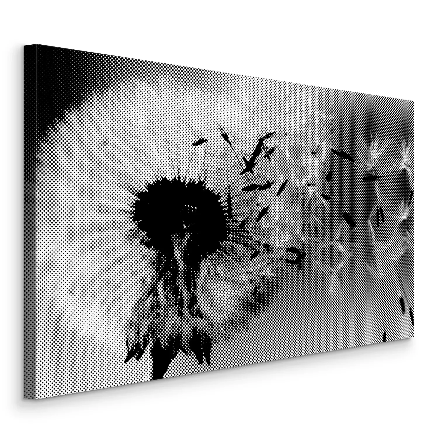 Schwarzer und weißer löwenzahn im wind