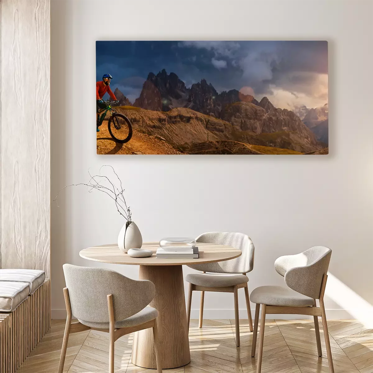 Bild Schwarzes Fahrrad und Radfahrer auf dem Bergpfad