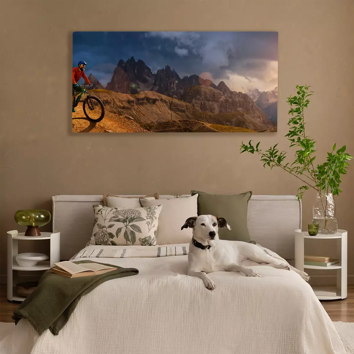 Das Motiv wird auf eine qualitativ hochwertige Leinwand gedruckt, die auf einen Blendrahmen gezogen wird. Da der Aufdruck die Seitenkanten bedeckt, muss das Bild nicht zusätzlich eingerahmt werden. Wir empfehlen außerdem Kompositionen aus mehreren Bildern, die ein harmonisches Ganzes bilden.