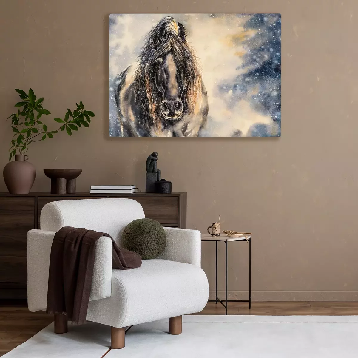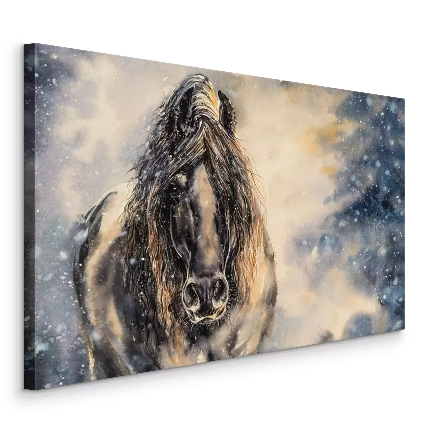Bild Schwarzes Pferd an einem Wintertag