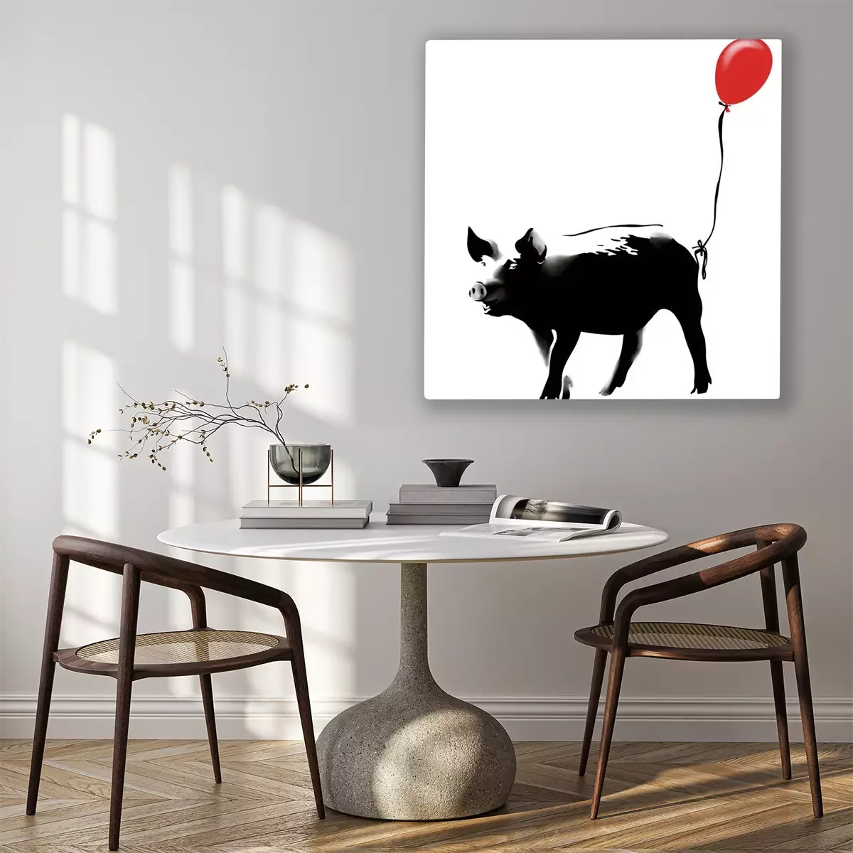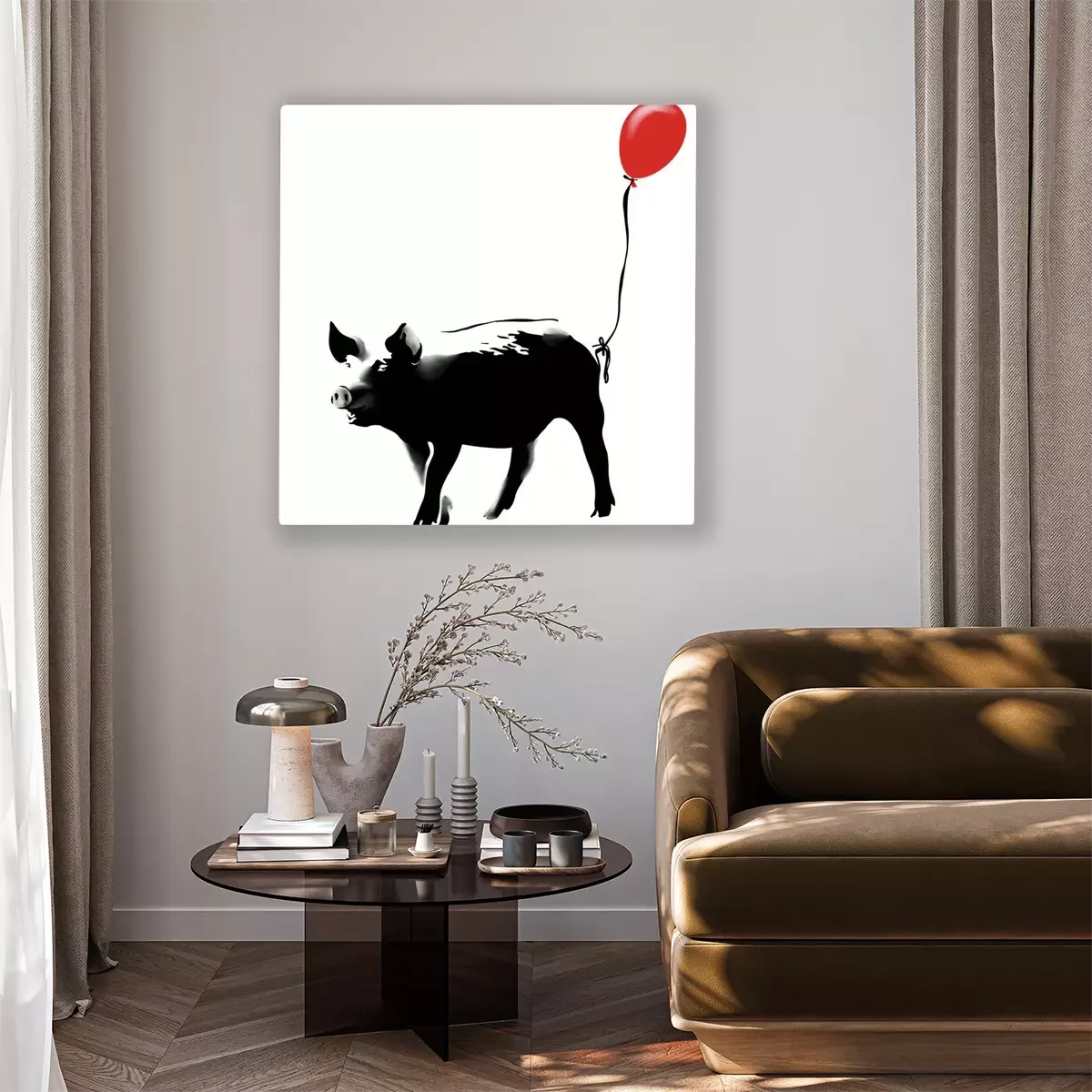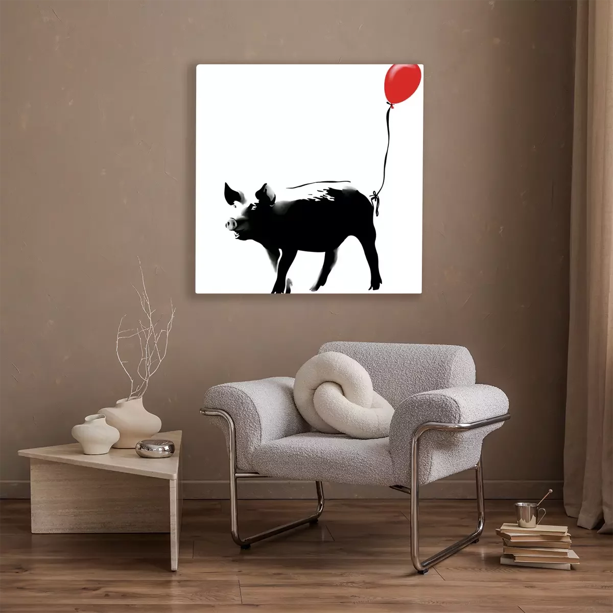 Bild: Schwein mit einem roten Luftballon im Banksy-Stil