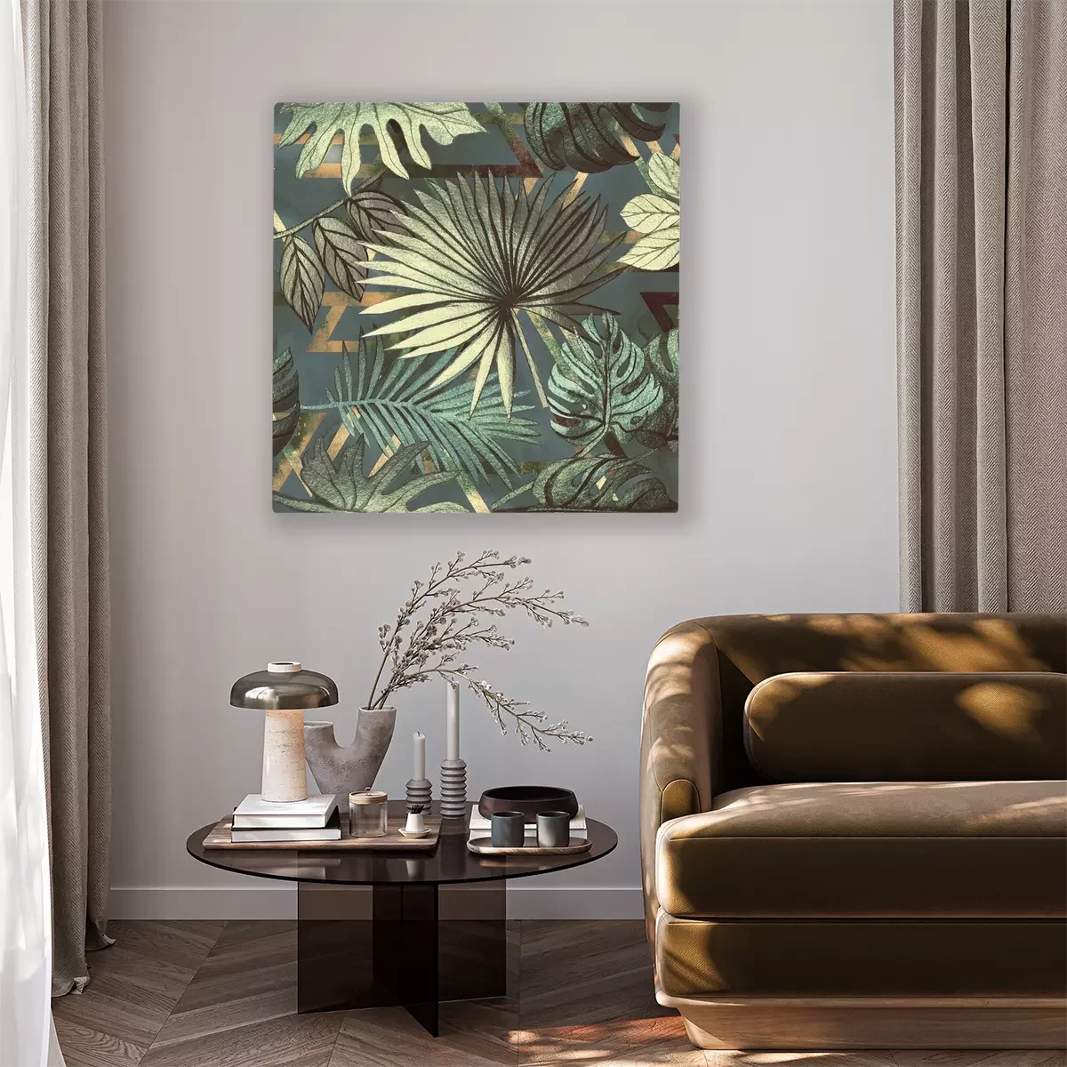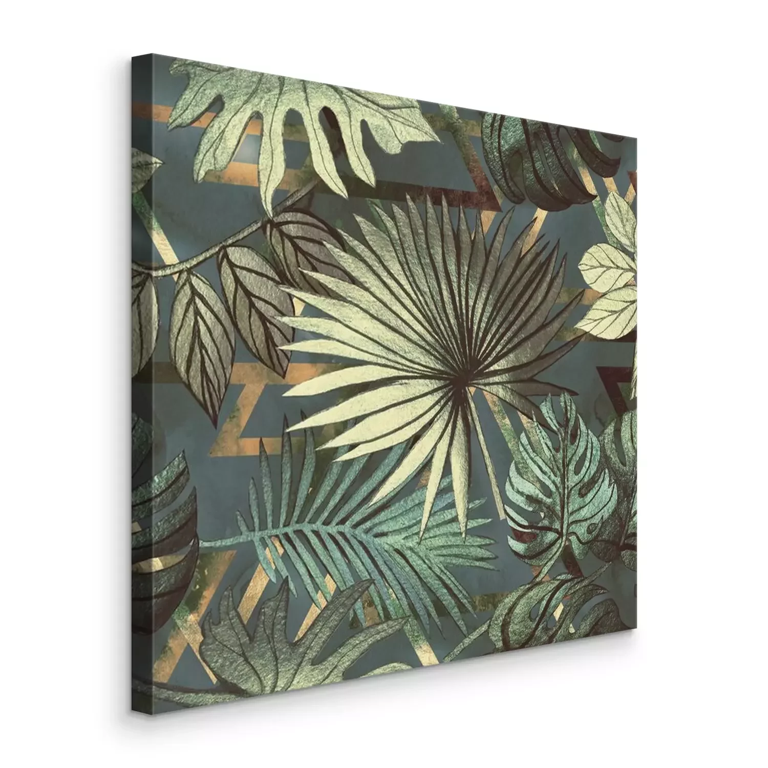 Bild Seamless pattern with tropical leaves and  geometric shapes. Tropical  background.