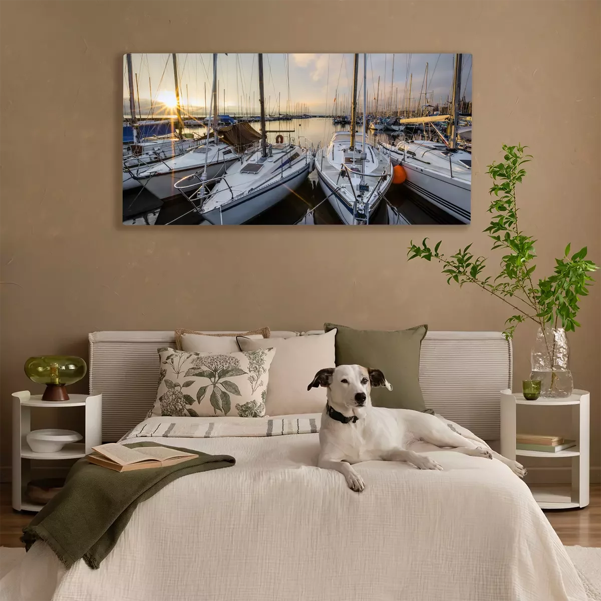 Segelschiffe in den Strahlen der untergehenden Sonne