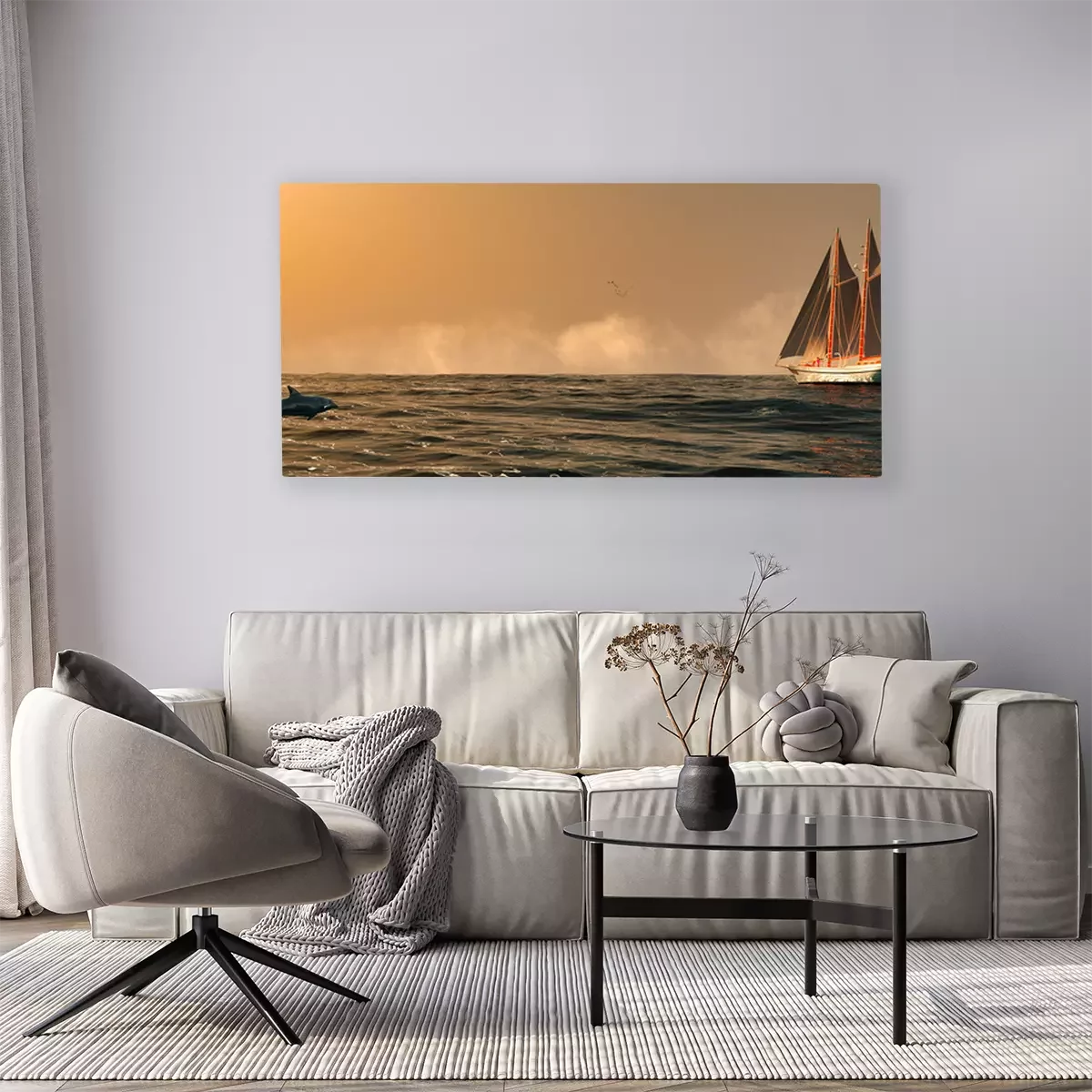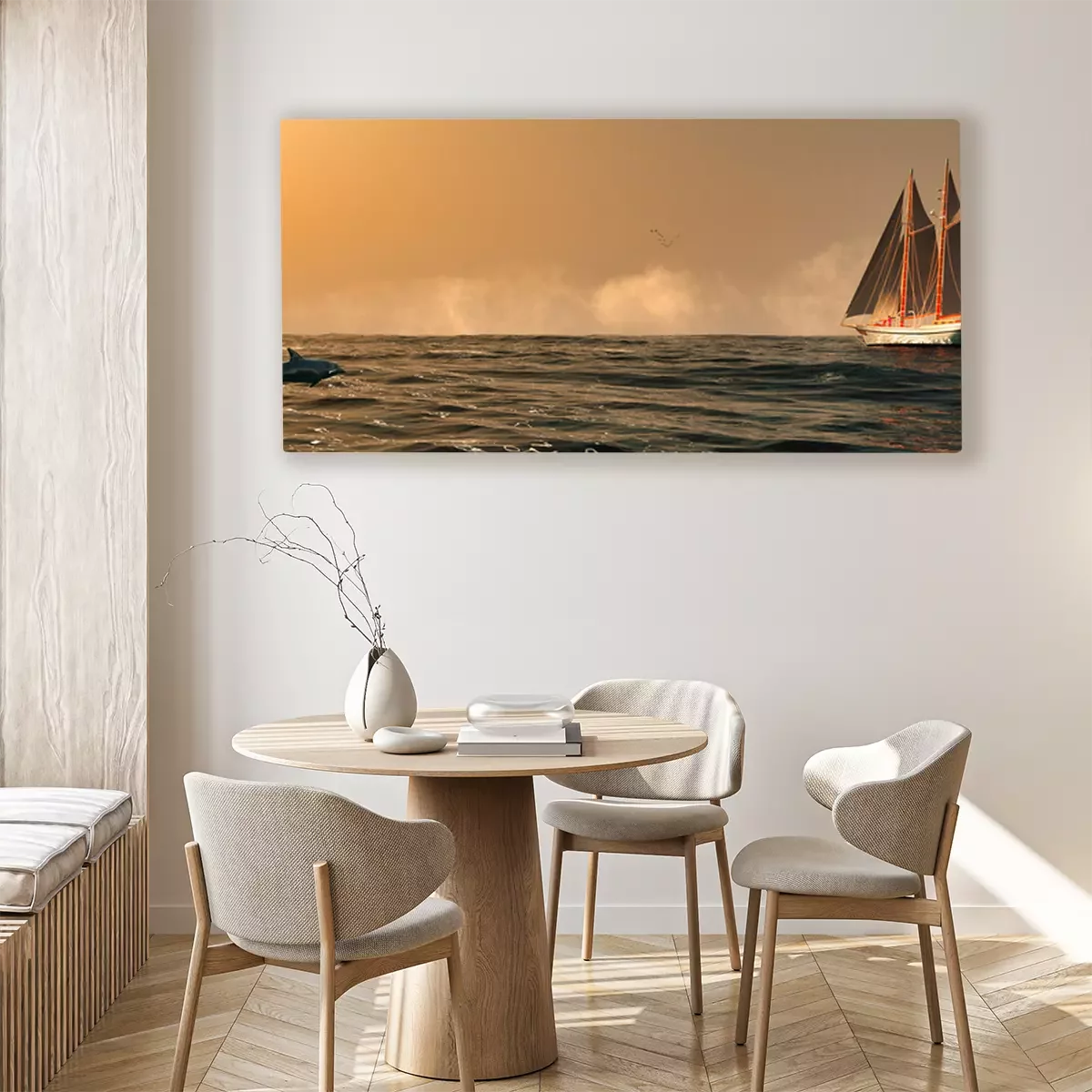 Bild: Segelschiff und Delfin