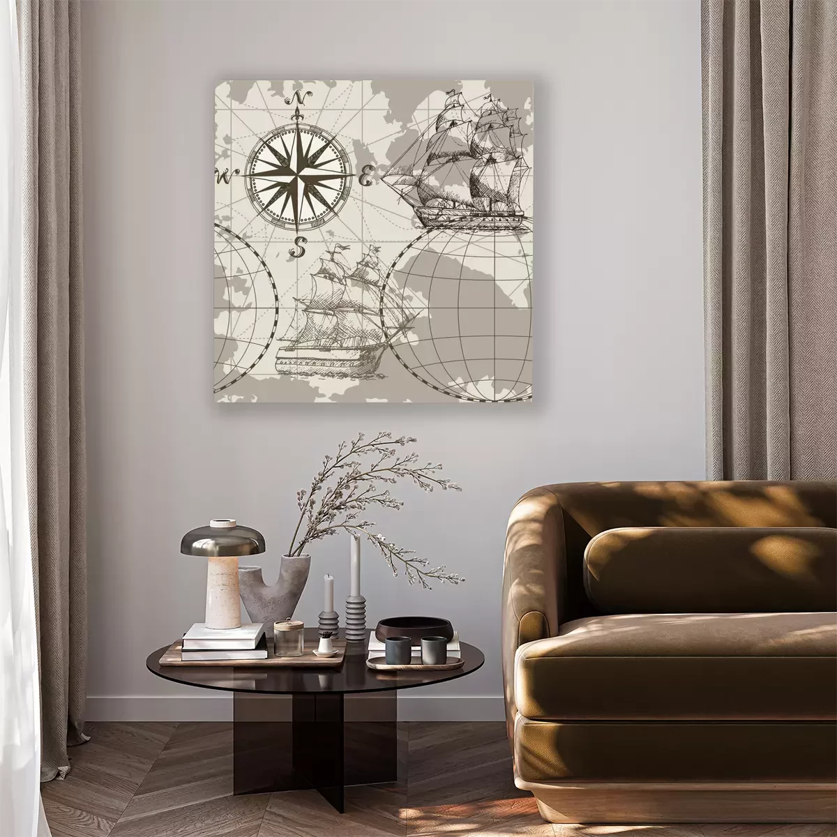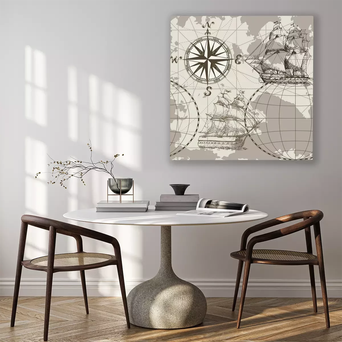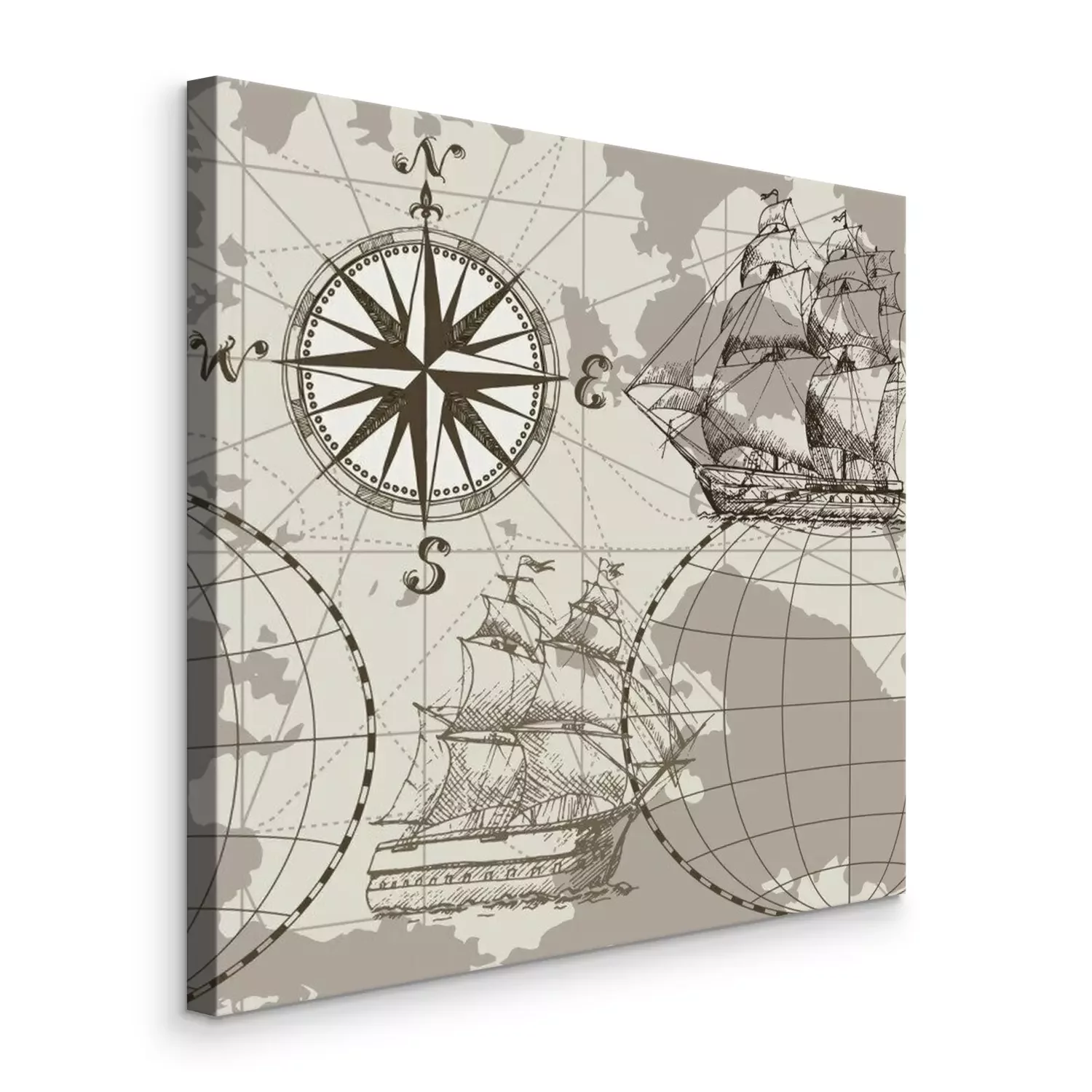 Bild Segelschiffe und die Windrose auf der Karte