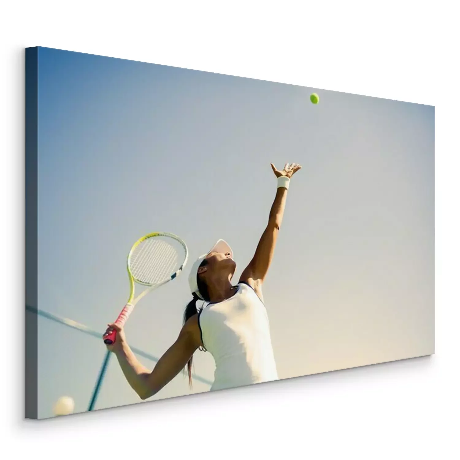 Bild Servierende Tennisspielerin auf Himmelhintergrund