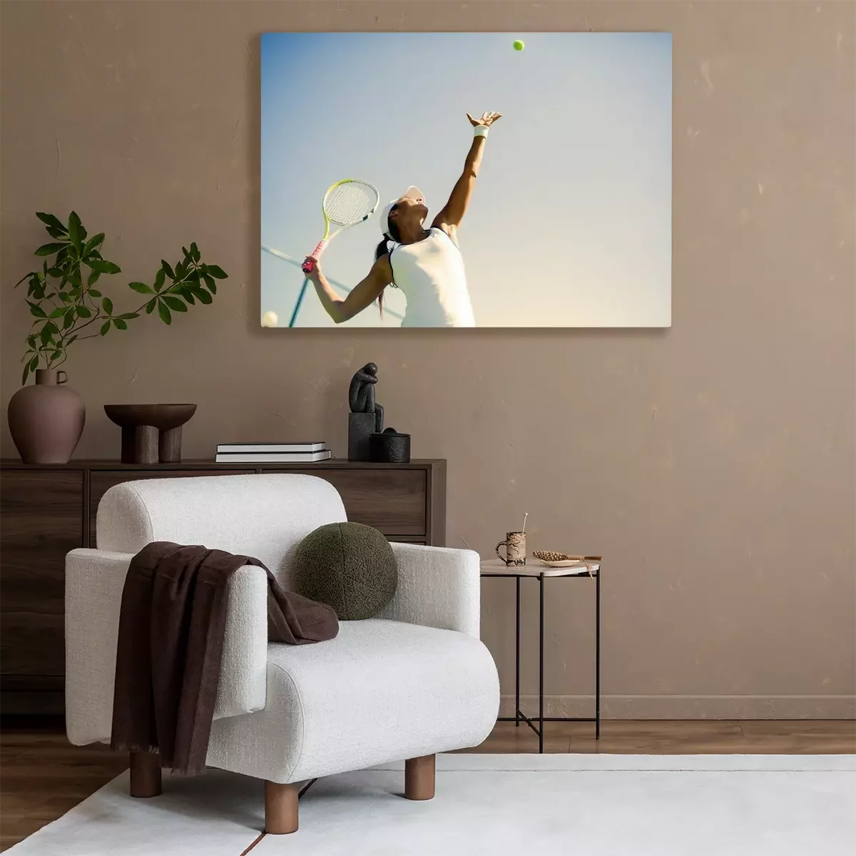 Bild: Servierende Tennisspielerin auf Himmelhintergrund