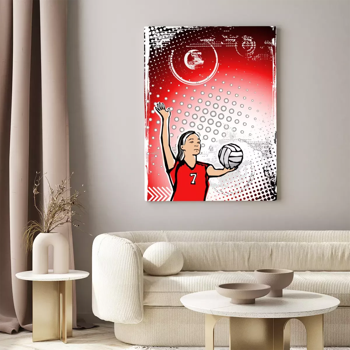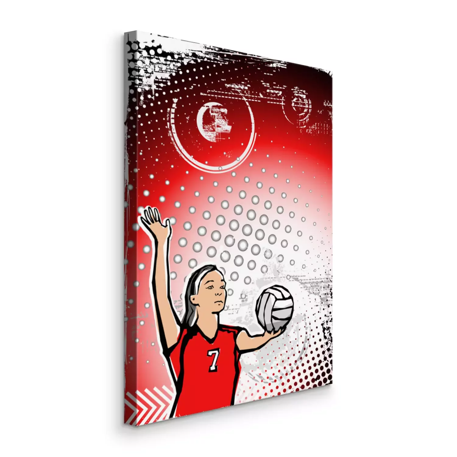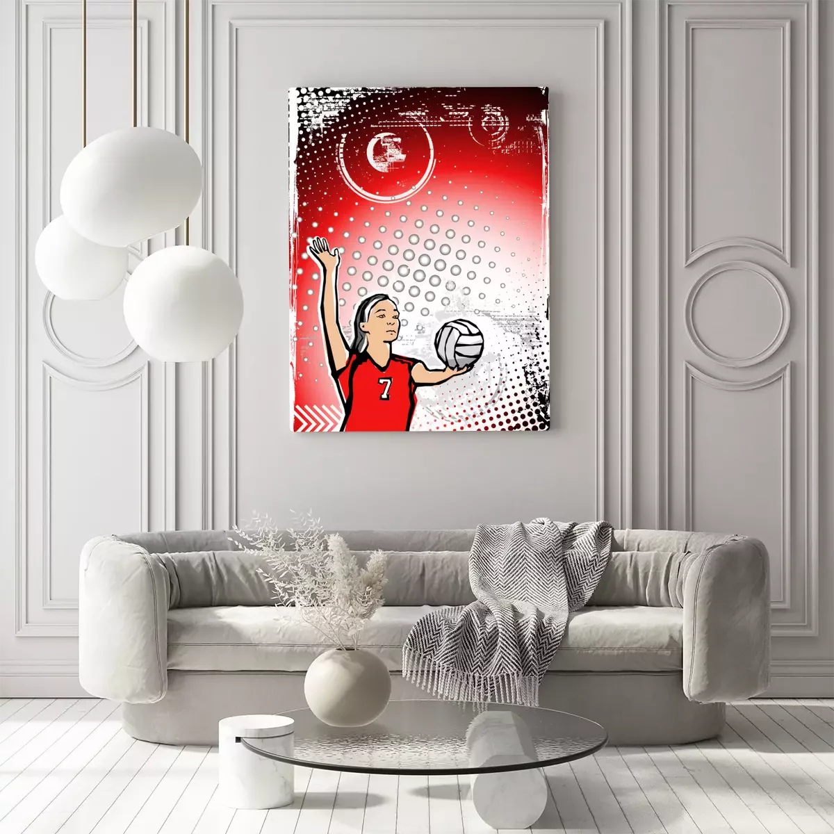 Bild Servierende Volleyballspielerin auf rotem Hintergrund