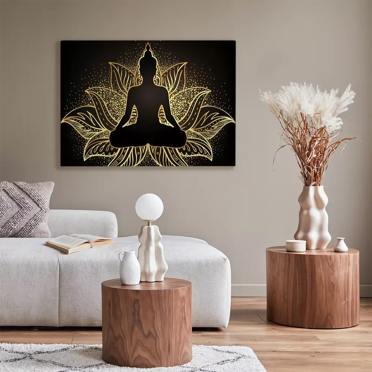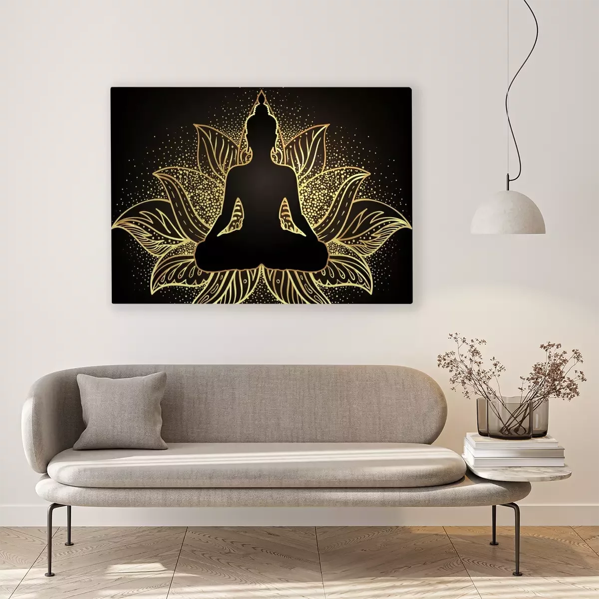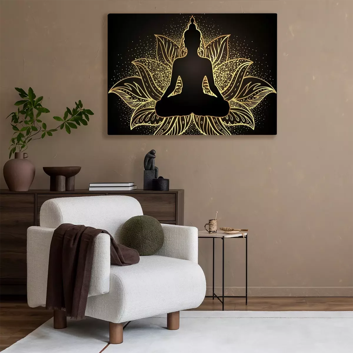 Bild Silhouette des Buddhas im Lotussitz vor dem Hintergrund von Mandala