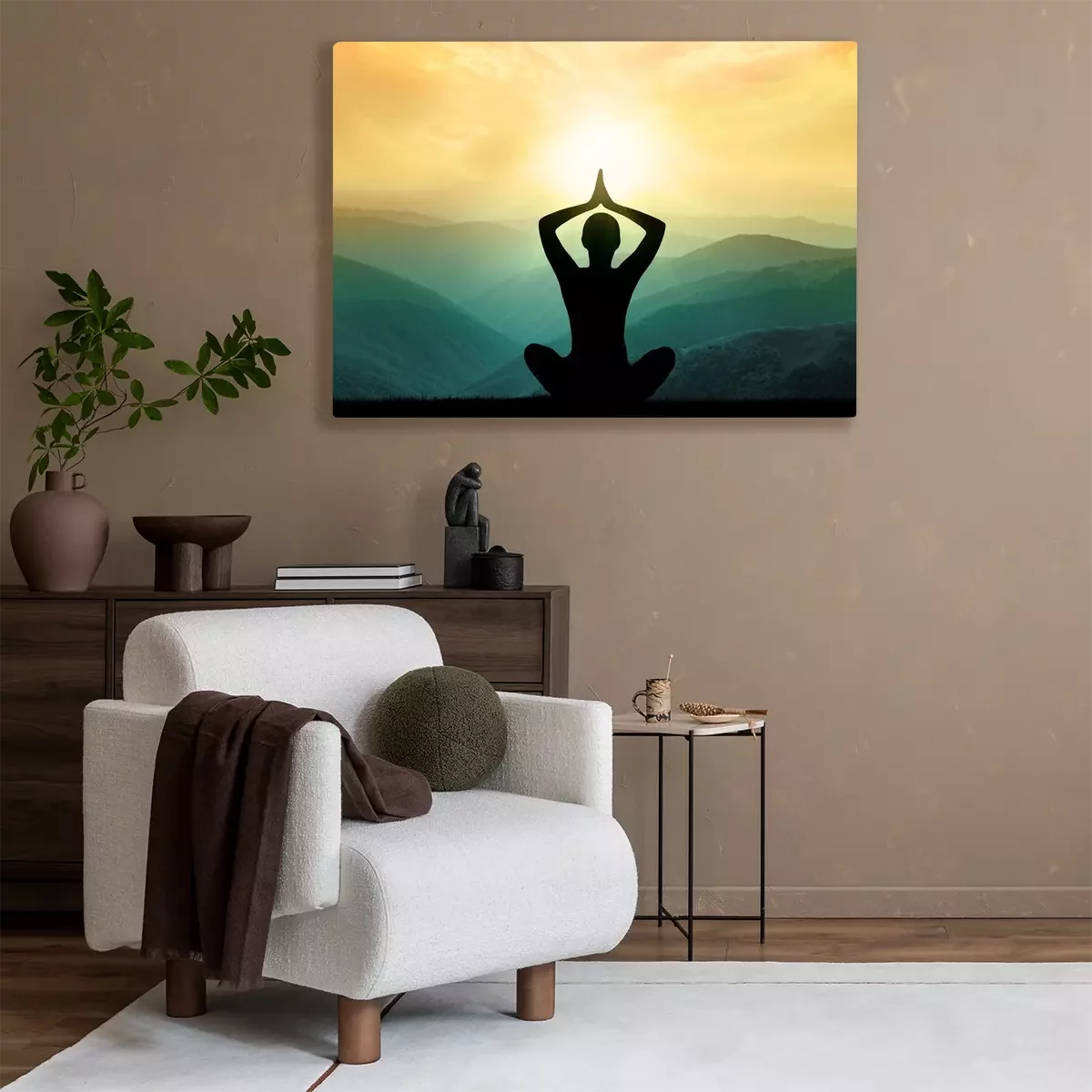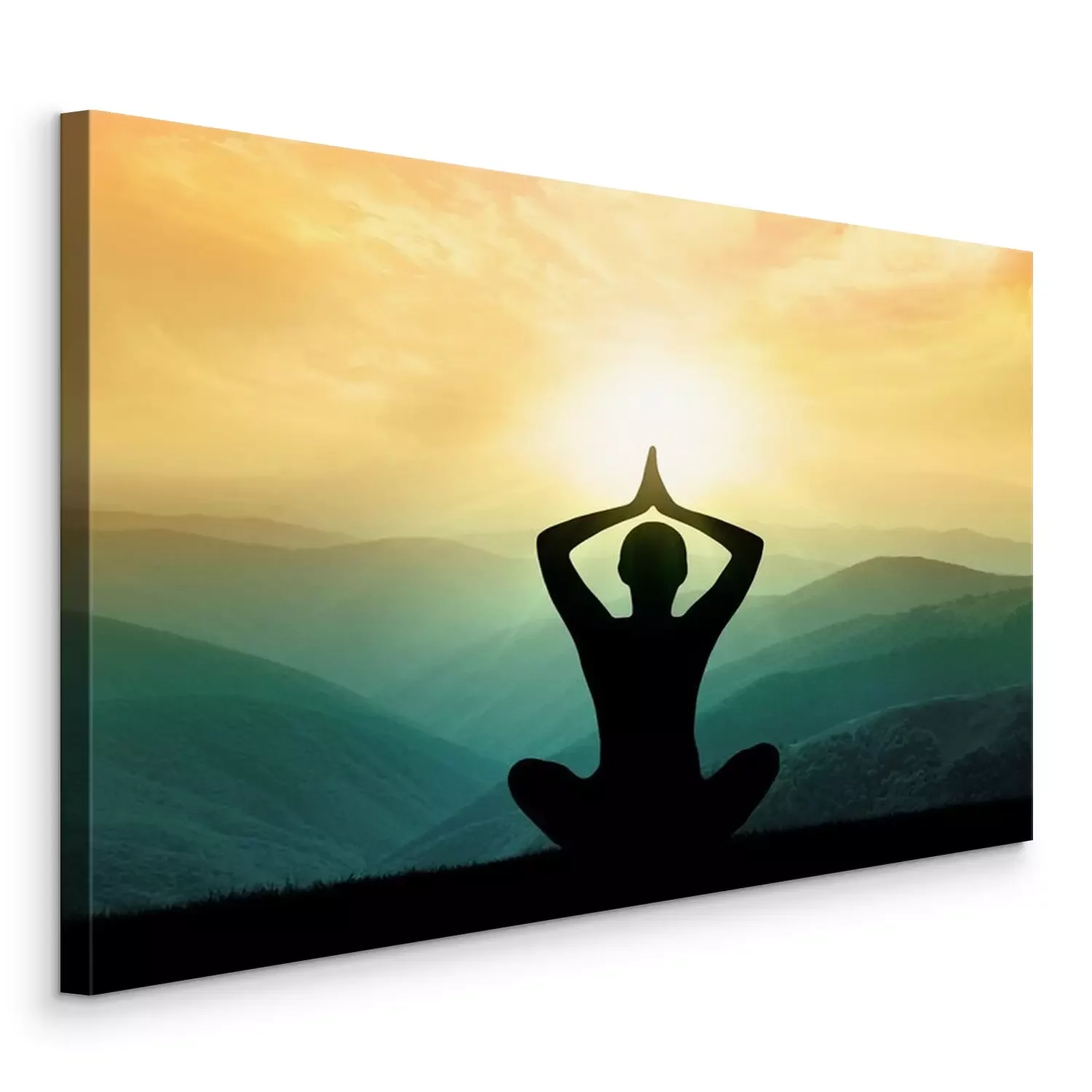 Bild Silhouette eines meditierenden Menschen vor dem Hintergrund einer Berglandschaft