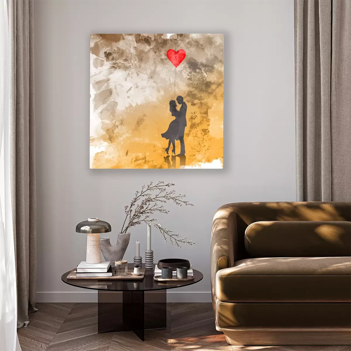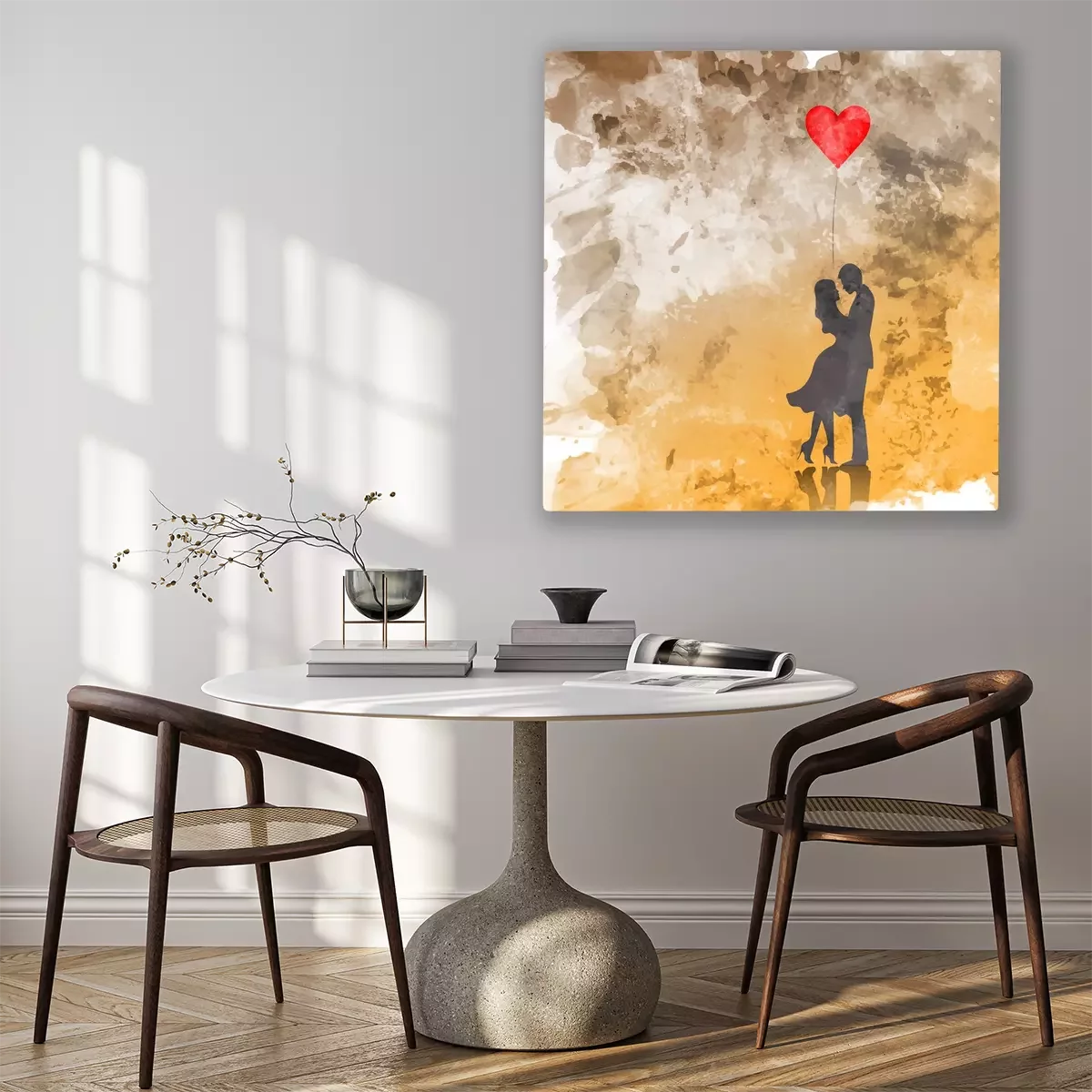 Bild: Silhouetten eines verliebten Paares mit einem roten Herzen