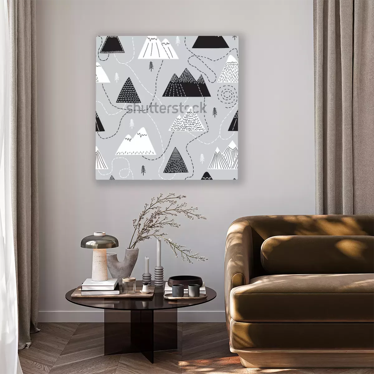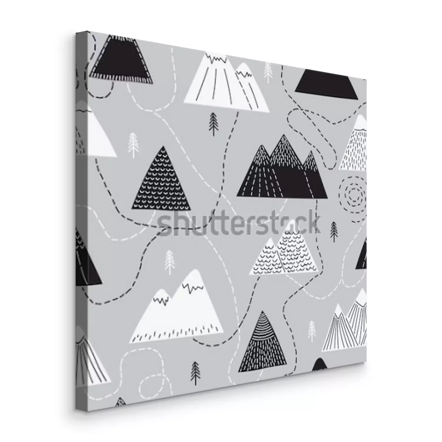 Bild Skandinavisches Muster aus Bergen und Weihnachtsbäumen