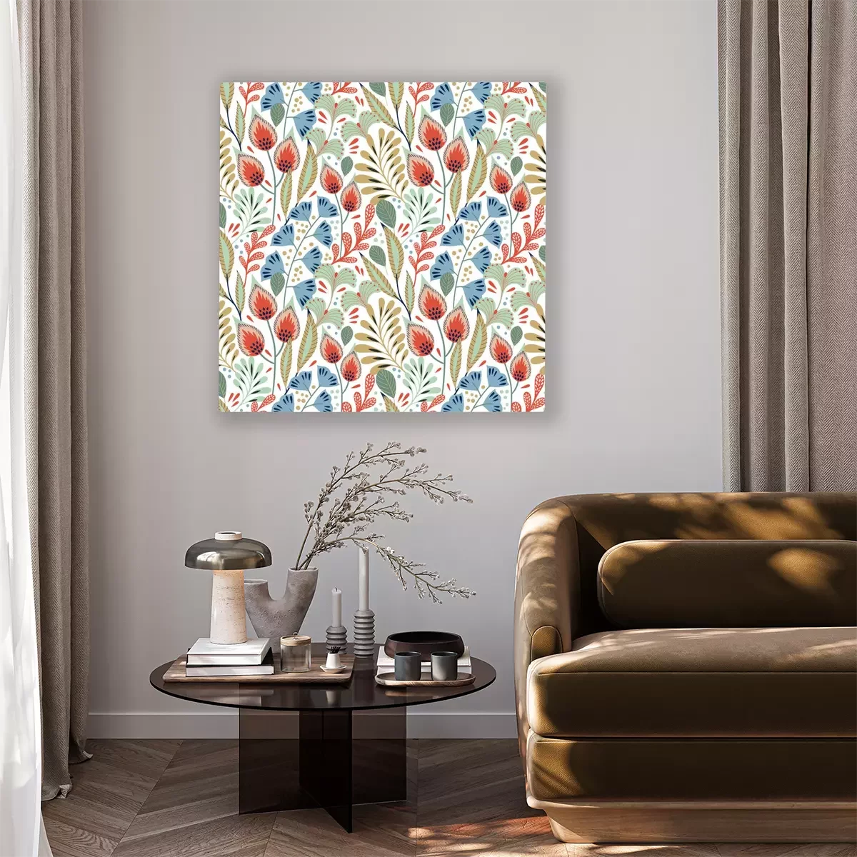 Blumenmuster auf weißem Hintergrund im skandinavischen Stil