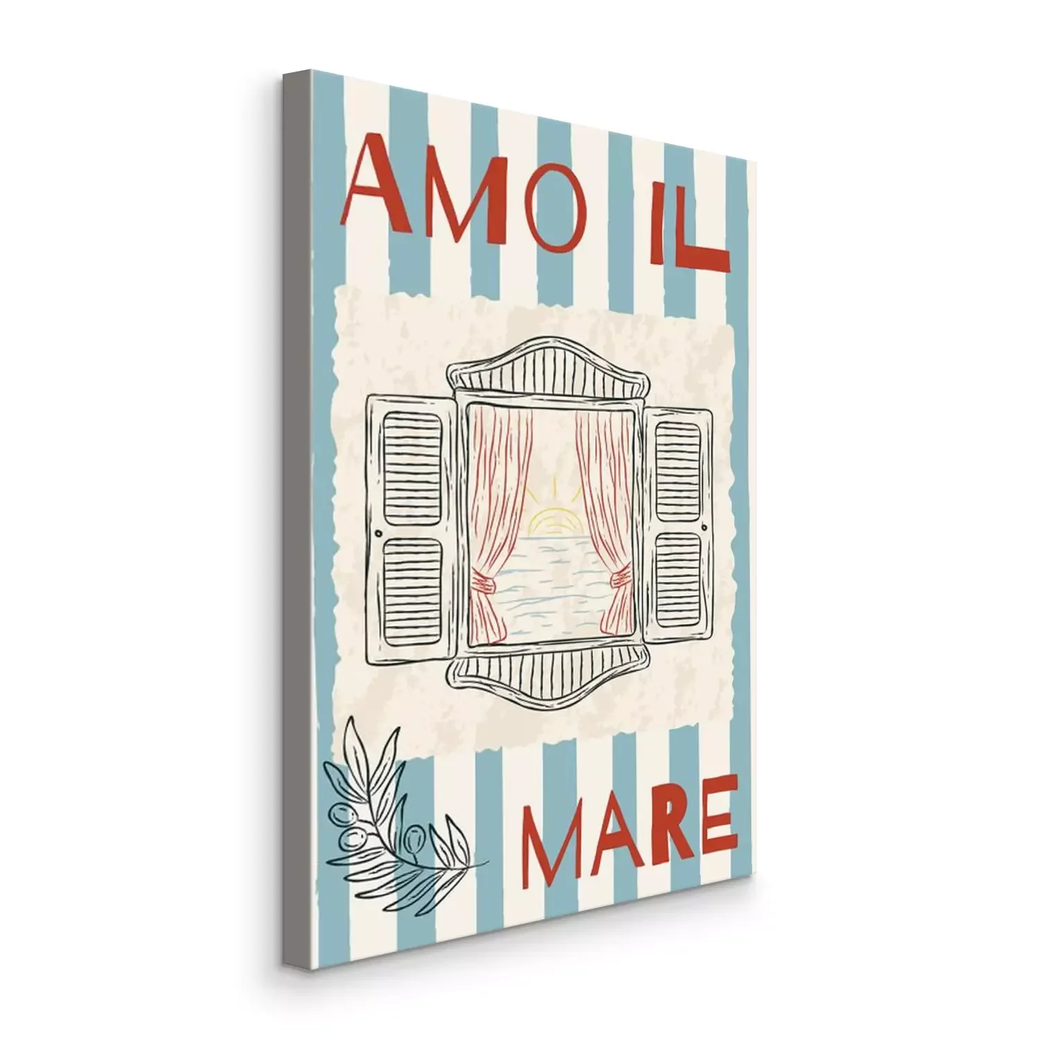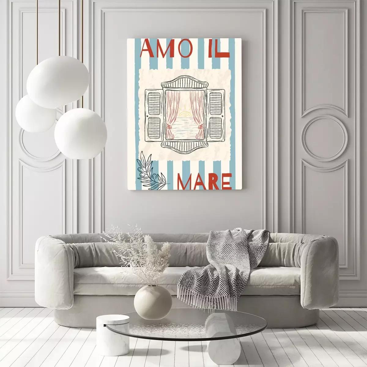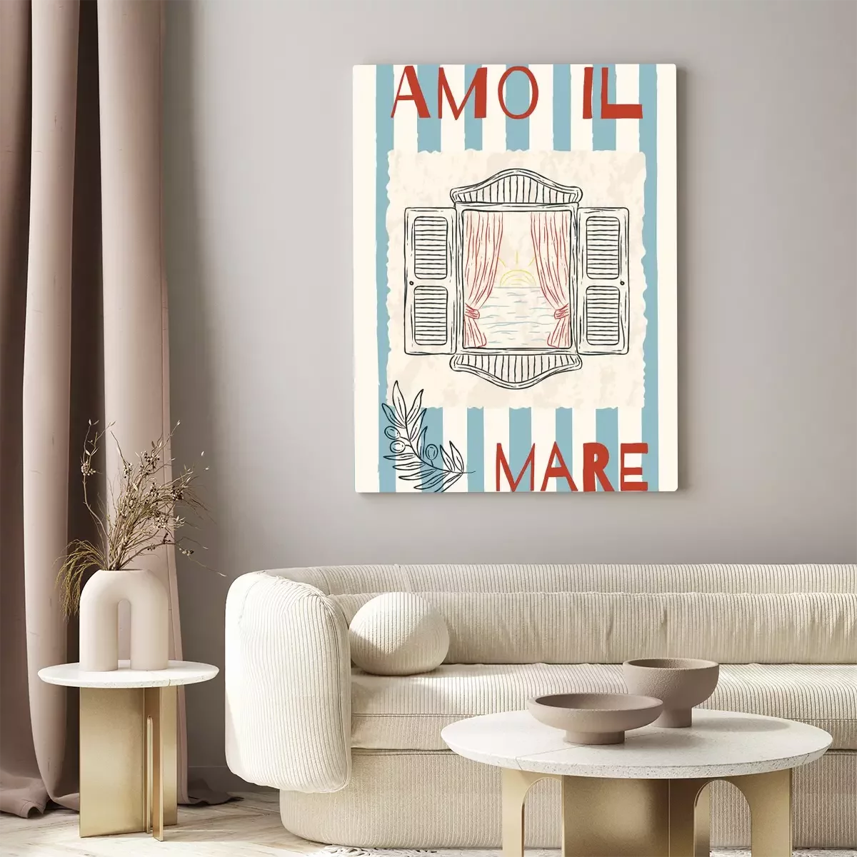Skizze eines offenen fensters mit blick auf ruhige wellen