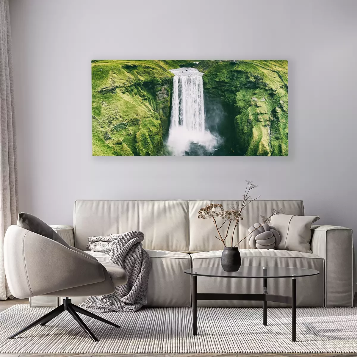 Bild Skogafoss Wasserfall inmitten des Grüns
