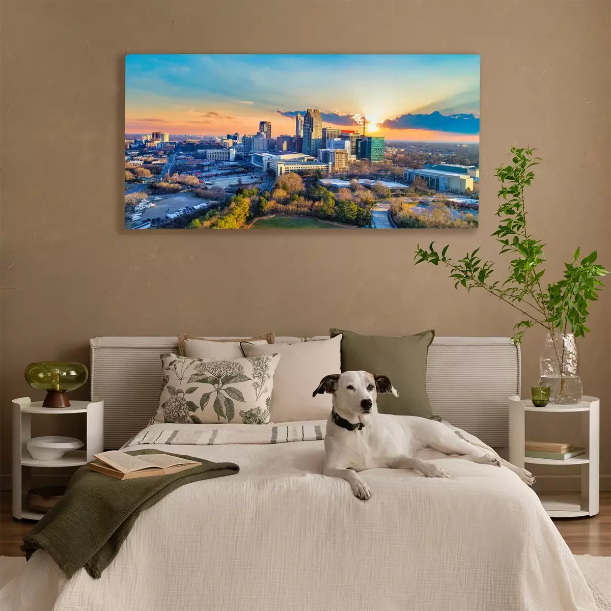Das Motiv wird auf eine qualitativ hochwertige Leinwand gedruckt, die auf einen Blendrahmen gezogen wird. Da der Aufdruck die Seitenkanten bedeckt, muss das Bild nicht zusätzlich eingerahmt werden. Wir empfehlen außerdem Kompositionen aus mehreren Bildern, die ein harmonisches Ganzes bilden.